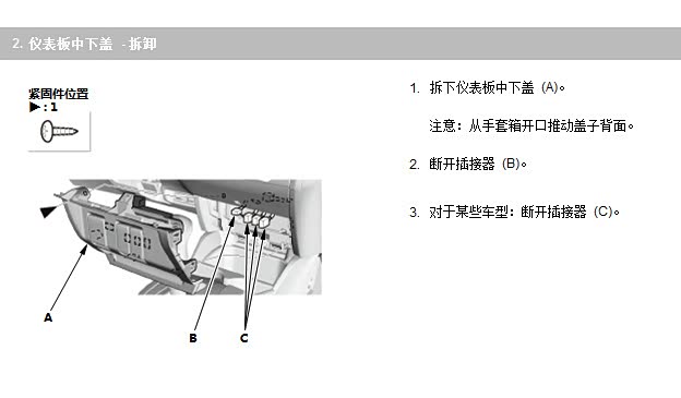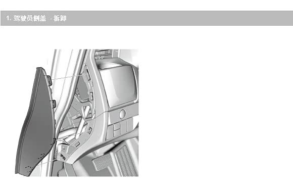 3、扒开驾驶座门胶条,拆掉仪表台侧面板,然后拧下一颗螺丝,扒开仪表台下面板。见图