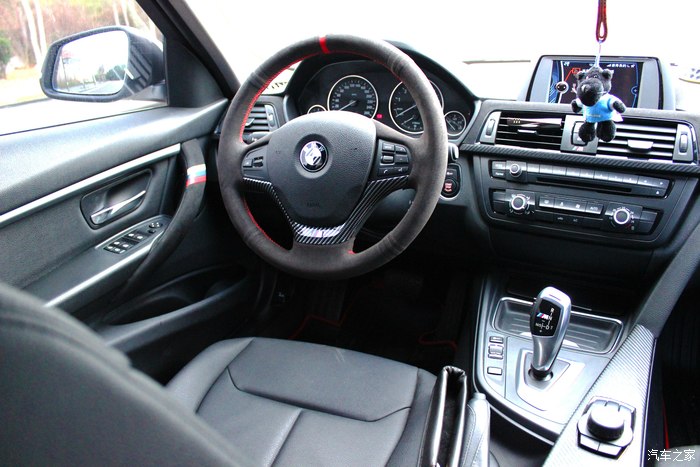 内饰我喜欢原厂的MP翻毛皮套件,可是真心贵啊!那七件套要1万我觉得不太值,在某购物网站上搜了好长时间搜到了一家有卖类似这个的装饰件,后来我又搜了很久发现仅此一家跟我要求的相似,看了看评论觉得还可以所以又做了一次马云的男人。(后来也有很多人跟我要链接我陆续都给了,这个跟缝方向盘套一样是细活儿,东西也有一点点的瑕疵,在此强调下我发誓我真心不是托儿。)然后又从网上买了些碳纤维贴纸还有贴布,用来贴的副手面板跟外面的BC柱,自己动手缝的翻毛皮方向盘套(本人容易出手汗,这个套子不打滑手感超级赞!就是不知为什么后来变成暖色系了,翻毛有点发红的感觉,过些日子再换。)内饰下一步打算把露出镀铬的都该换换该贴贴,鸡腿、鸡腿座、油门踏板个人感觉就原厂那款M的不错。