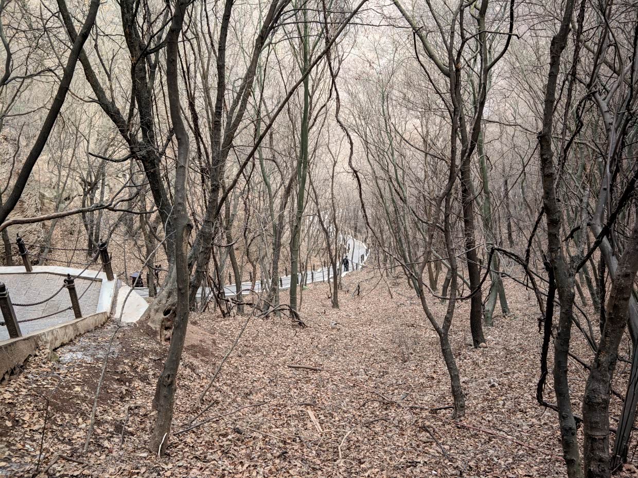 原路返回刚才提到的中台和皇城(朝天门)的分叉口,直接原路徒步下山。