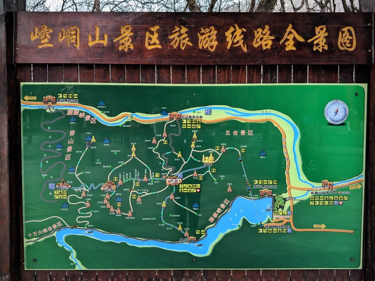 不想步行的,公交车坐到崆峒古镇,到游客中心乘坐景交车。景交车和公交一样先到东门,绕弯弯的山路坐到中台(核心景点),也可以坐到香山(终点),票价不同。大部分游客会坐到中台,然后走上天梯到皇城返回,就算完成崆峒山游览。到香山主要是有观光亭,可以看崆峒山全景,选择到香山的游客不多。到香山的,基本会走下来到皇城,再下到中台。