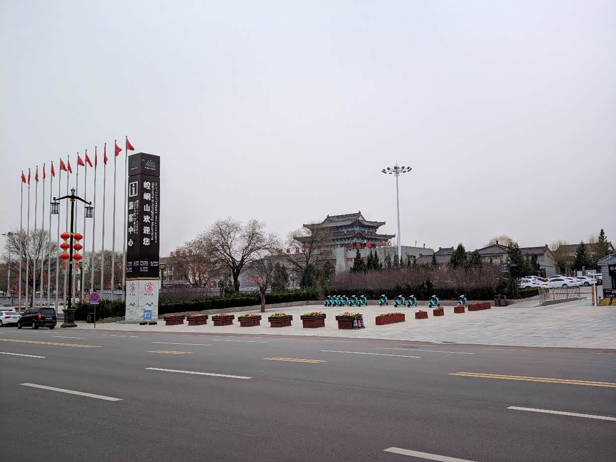 不是节假日,崆峒古镇挺冷清的。