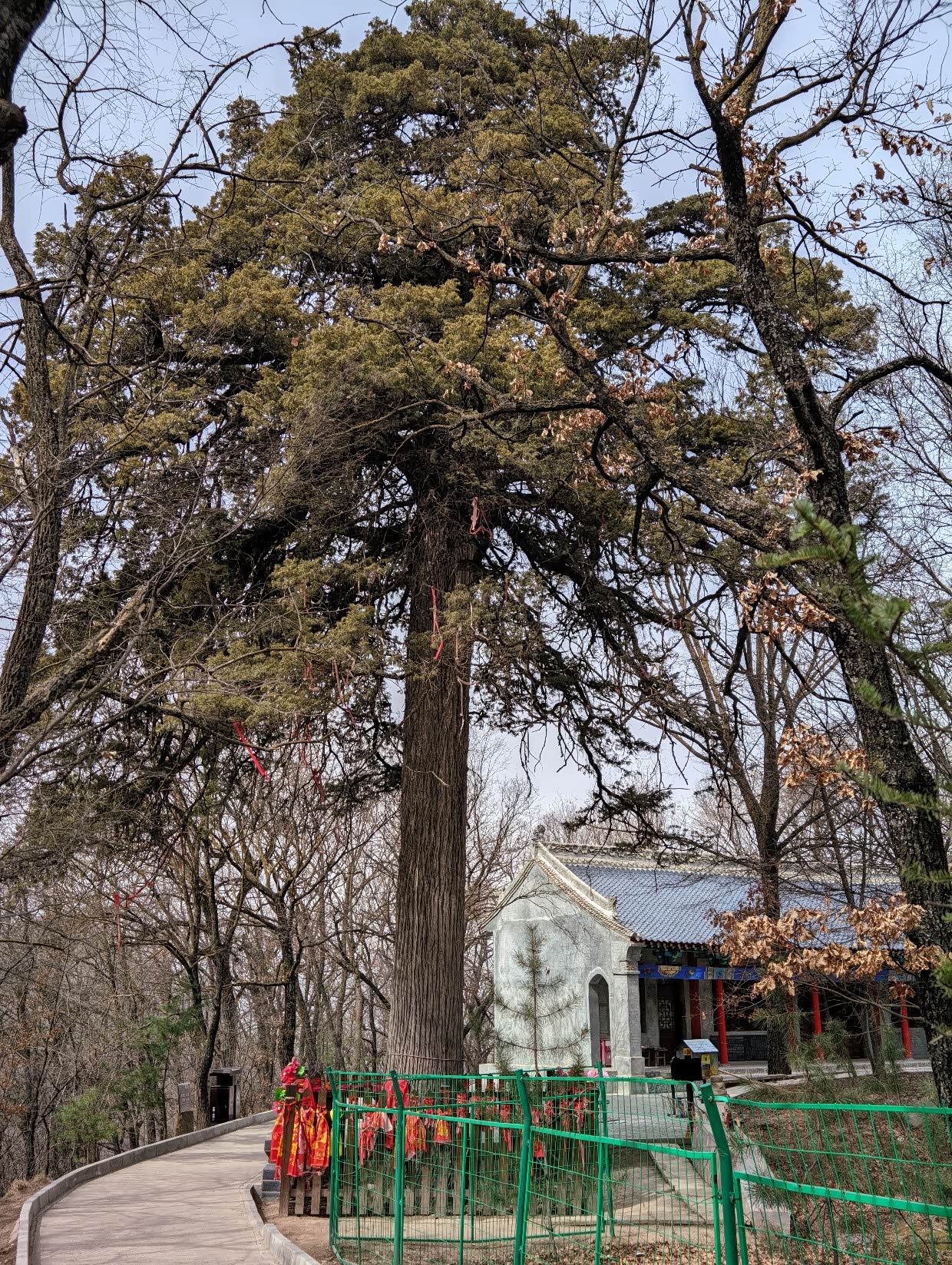 13:40;到达凤凰岭,观赏路边的古柏,2300年的树龄,被视为神树。