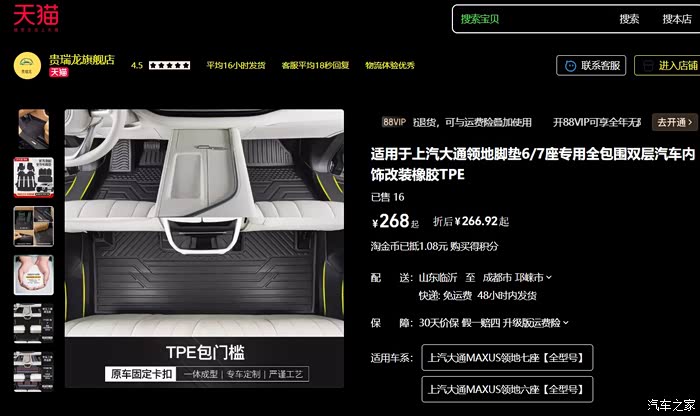 去年7月入手领地,找遍了全网都没有领地的TPE脚垫,都说D90PRO的脚垫可以替代,但问了使用过的车友还是有不吻合的地方,只好花了500多远买了一套所谓纳铂皮的,实在是聊胜于无,前后滑动,到处皱皱巴巴,实在是受不了我A型血追求完美的挑剔。