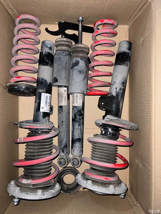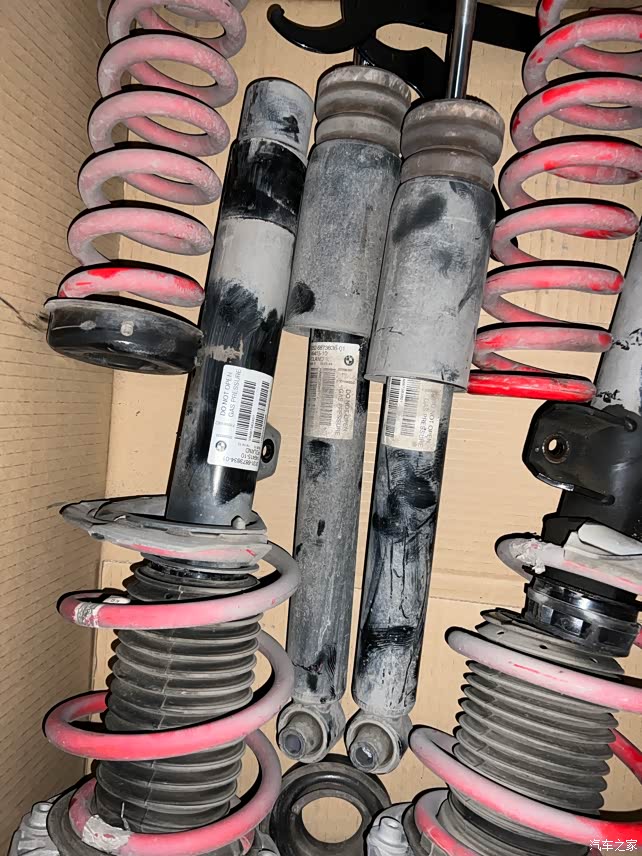宝马 原厂升级件 F30 F35可用 后驱mp避震,波兰产,带全套配件(前悬塔顶、缓冲块、防尘套),使用三万公里,完整的一整套四根避震。有一根前避震轻微渗油,可打包带走,也可单出,看个人需求可以聊。打包价四支4800,单出前避震一支2300,后面两支3200。