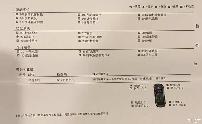 就很吃惊,旧车刹车片5万公里才换,这个车怎么2万公里就要换了???但提示的是刹车片保养,自我安慰成也只是“保养”而已。