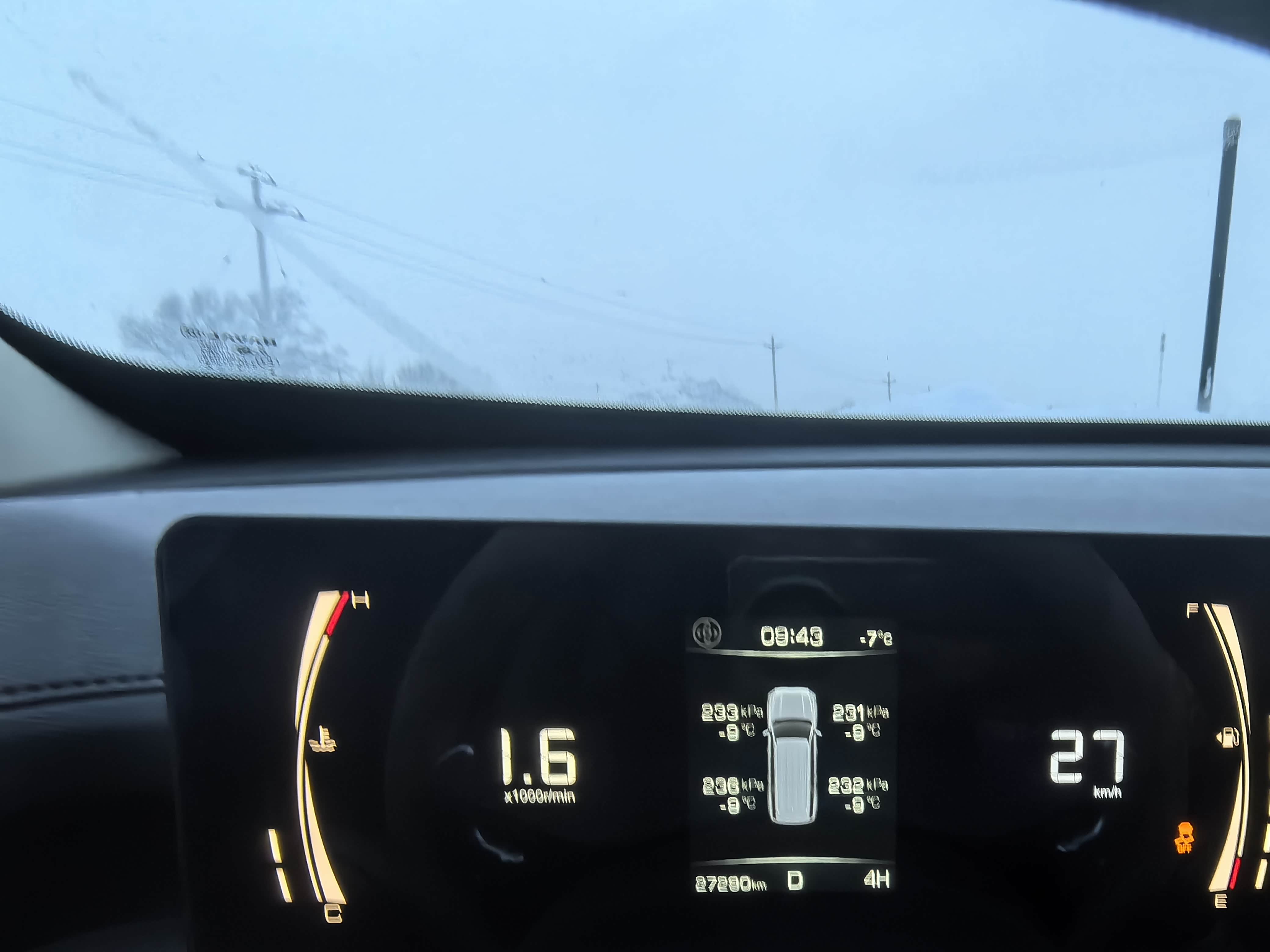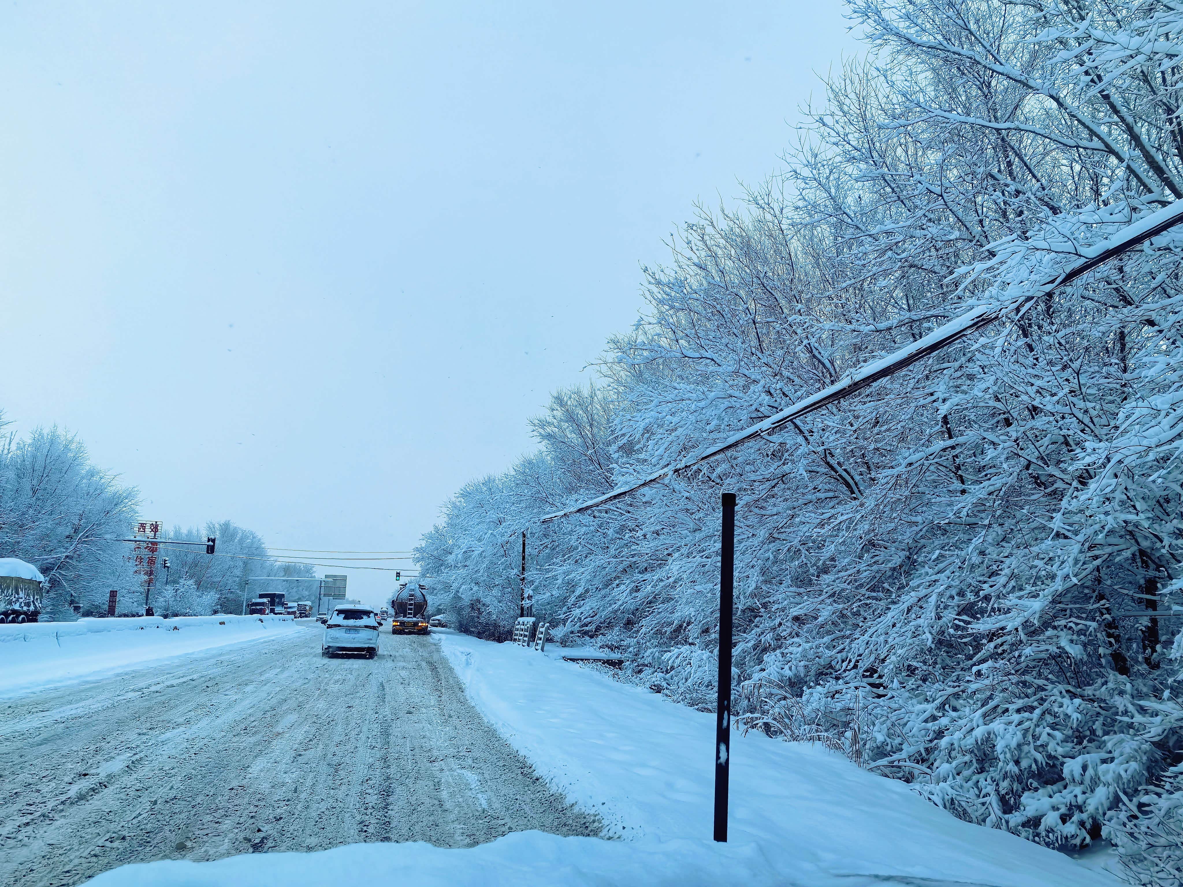 一路小心翼翼地开,路面结了层薄冰,然后一层厚雪,滑溜溜的。全程开着高速四驱,略微带点油门控制车辆方向。