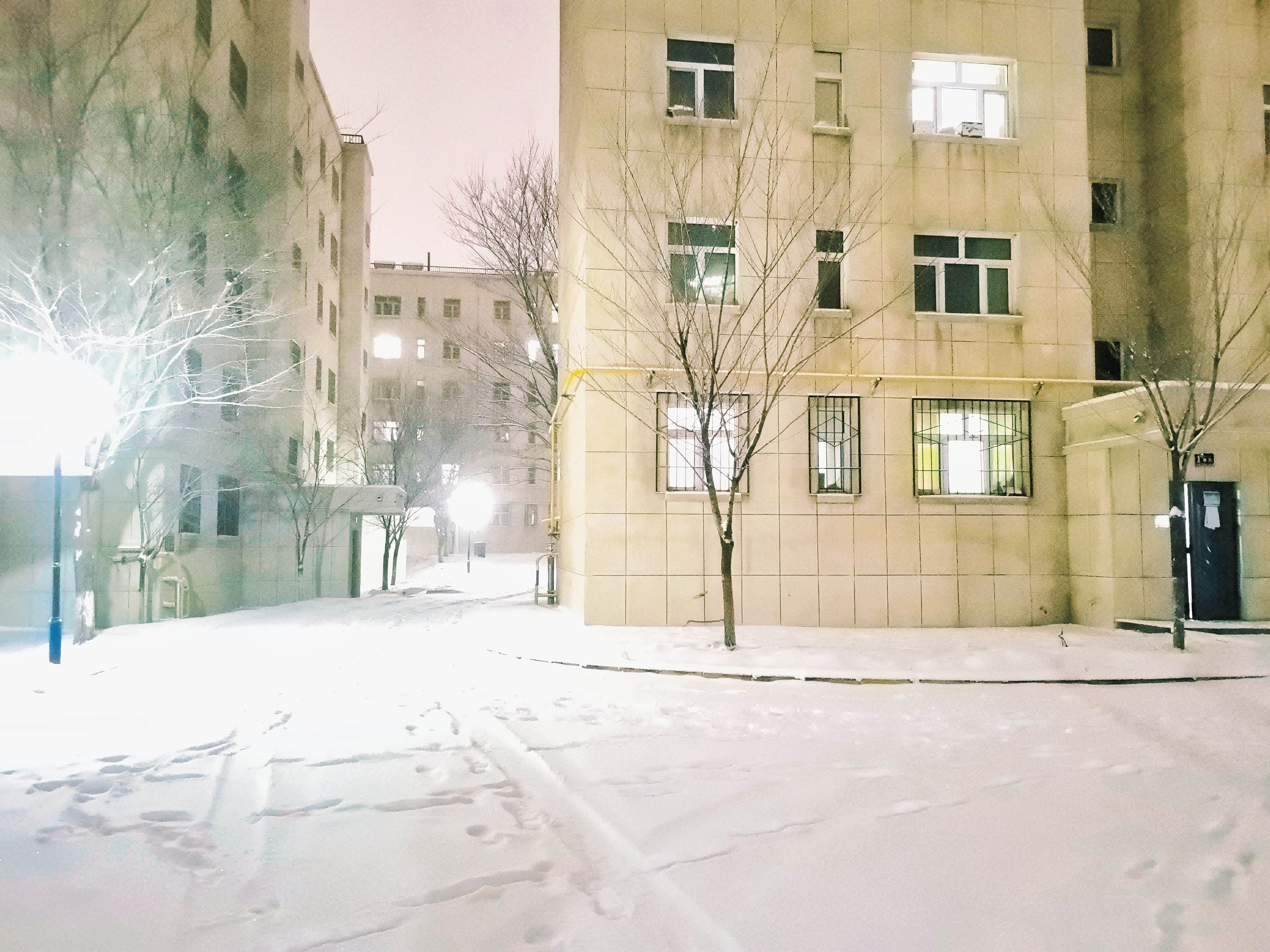 昨夜的雪,是悄无声息的信使,裹着月色,把整个小区晕染成了童话世界。路灯的光晕温柔地洒在雪地上,银霜似的雪粒泛着细碎的光,连空气里都飘着清冷又浪漫的味道。