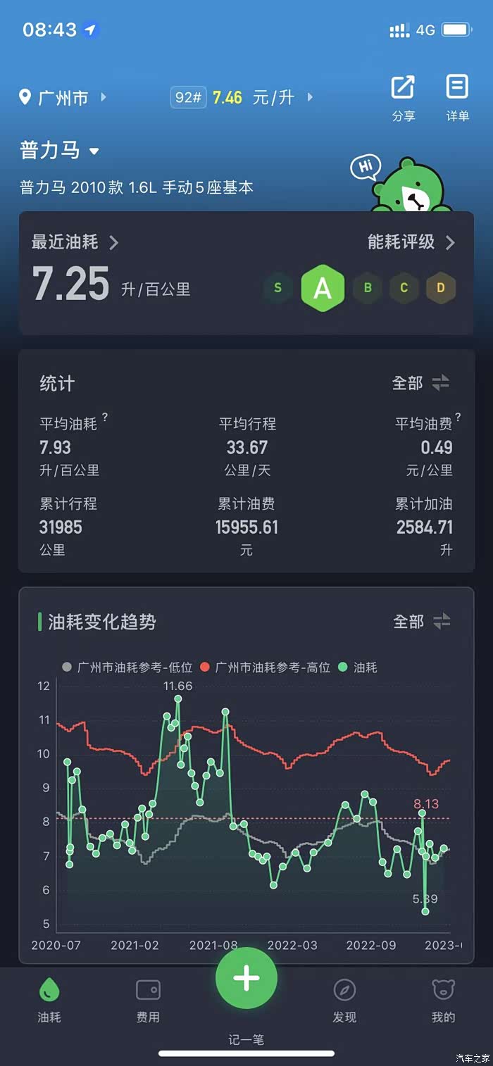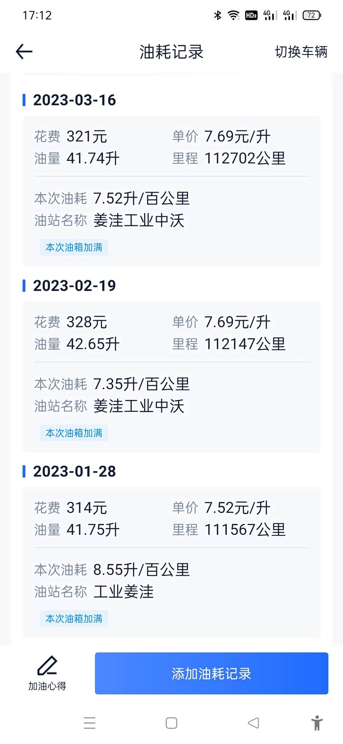 也要百公里7.5个月,每公里5.8毛,手动1.6差不多了。我的老马1.8自动,百公里8.5-9个油,每公里7毛左右,中石化加油7.81每升。