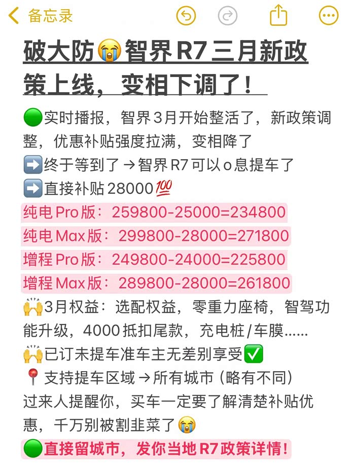 🟢智界三月开始整活了,新政策调整,优惠补贴强度拉满,智界R7调到史低