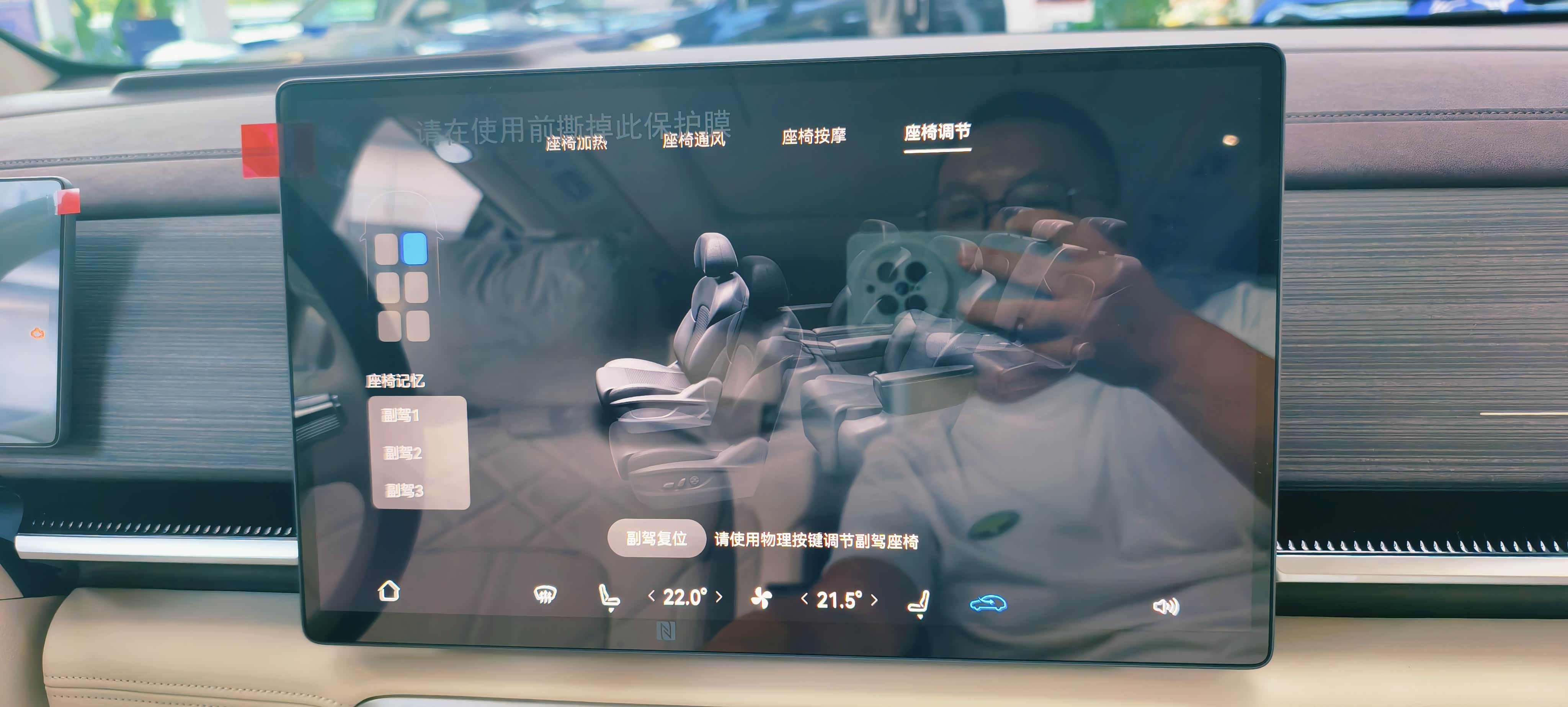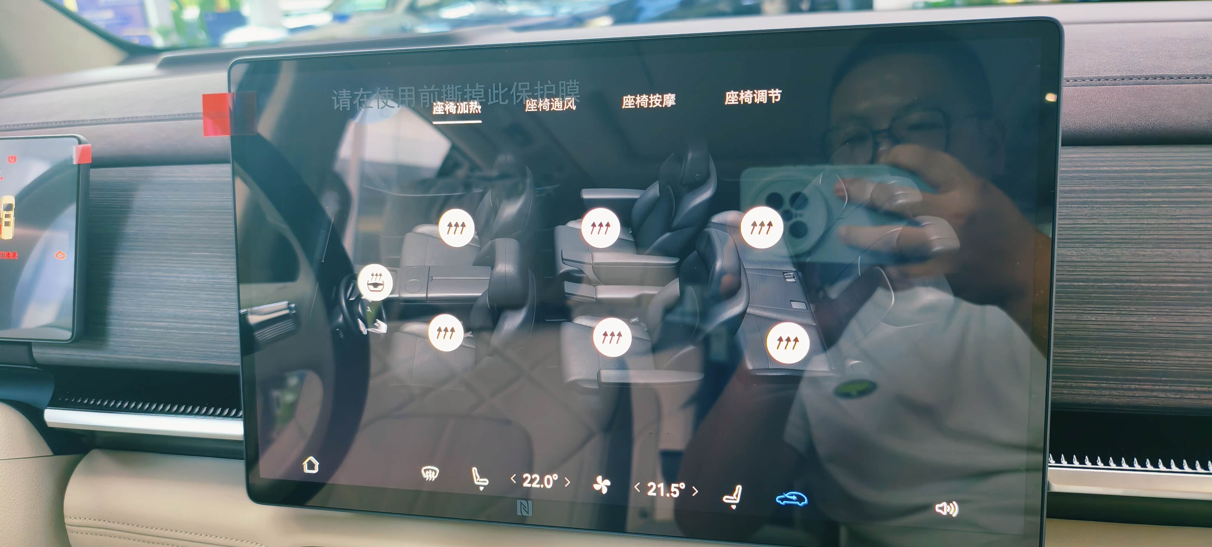 重点体验了第二排AI零重力按摩舱,16向电动调节+26点叩击按摩功能,配合三排座椅全域加热/通风,真正实现移动头等舱的舒适体验 。