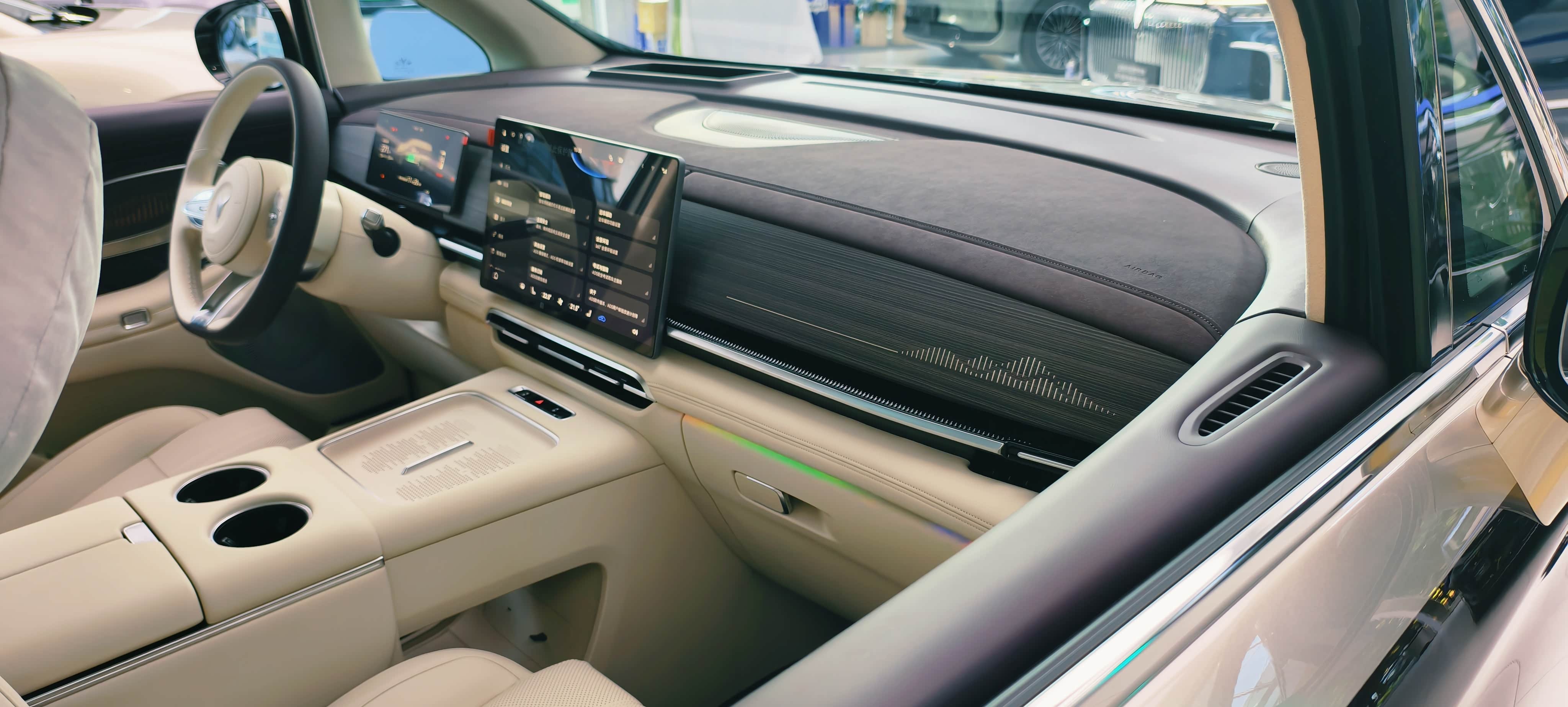 展厅内双拼配色的展车尤为吸睛,双色车身搭配20英寸星芒轮毂,在灯光下呈现出流动的金属质感。