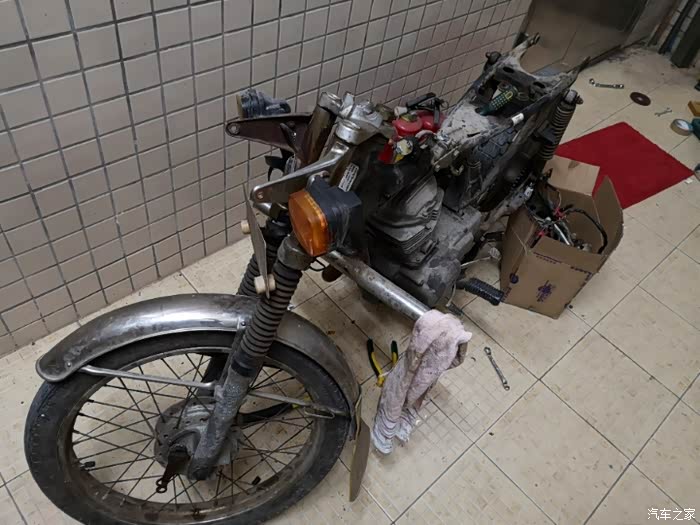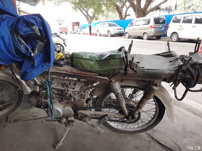 话说把这车开回家还吓了个半死,车子在广州大学城,广州N年前就禁摩了,过期报废摩托车被列入五类车,一经查处,吊锁驾照拘留15天。当时查了下货拉拉,只需90元就能请台小货车把摩托车拉回家,但自己想了想,今天是周日,交警很少上路巡逻,只有3公里路程就把车开到安全没查车的路段,就搏一搏吧。也不知车子停了多久没发动了,拉风打了好多下打着了,热车了好几分钟也没有怠速,没办法只得拉着高转上路了。
