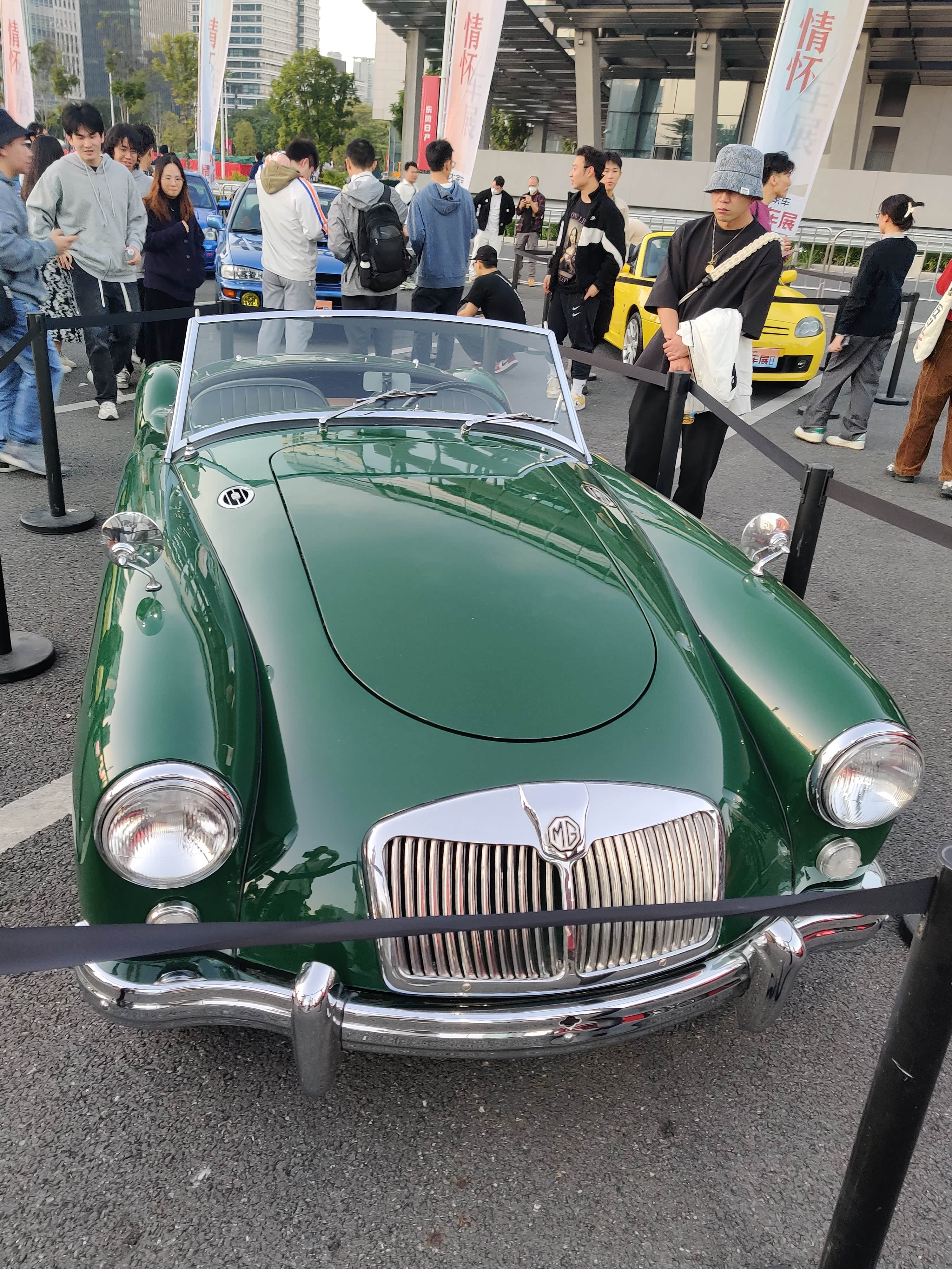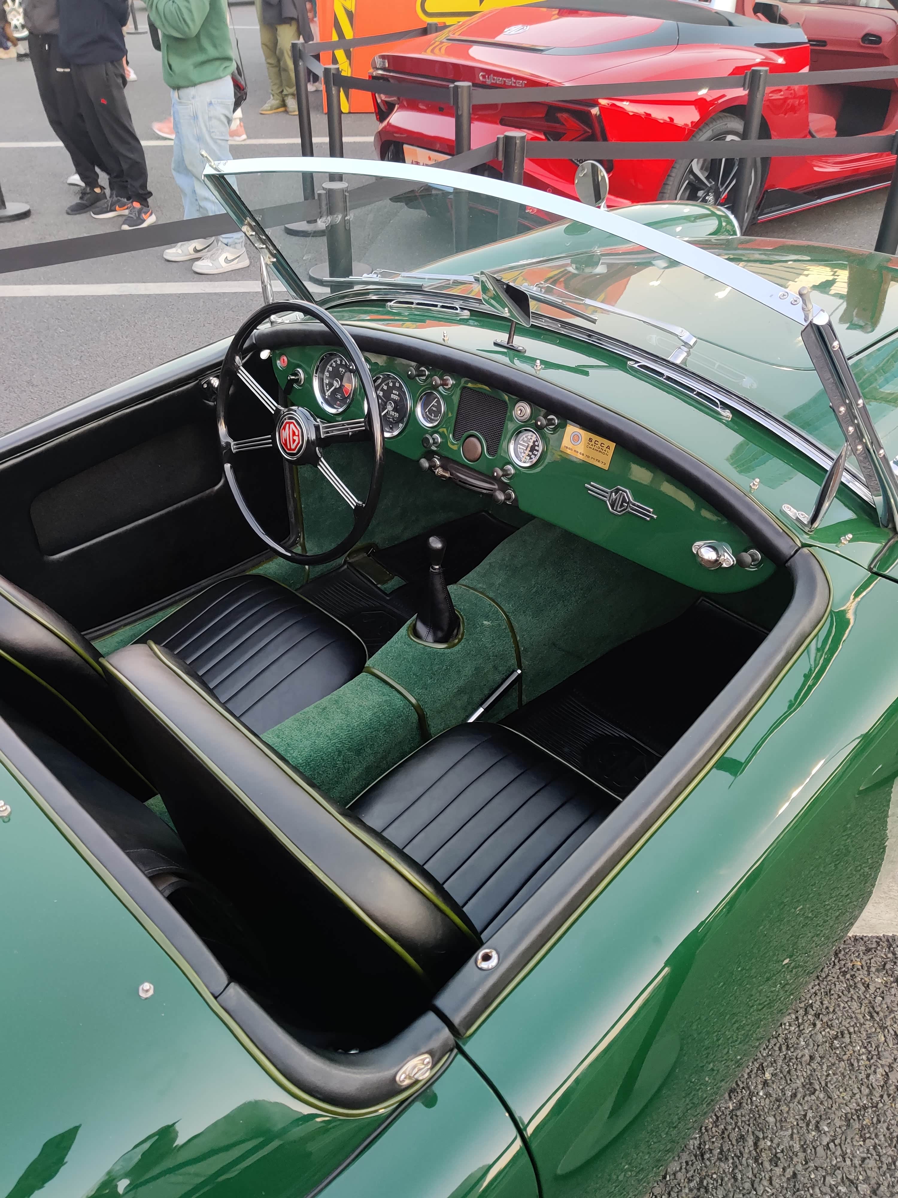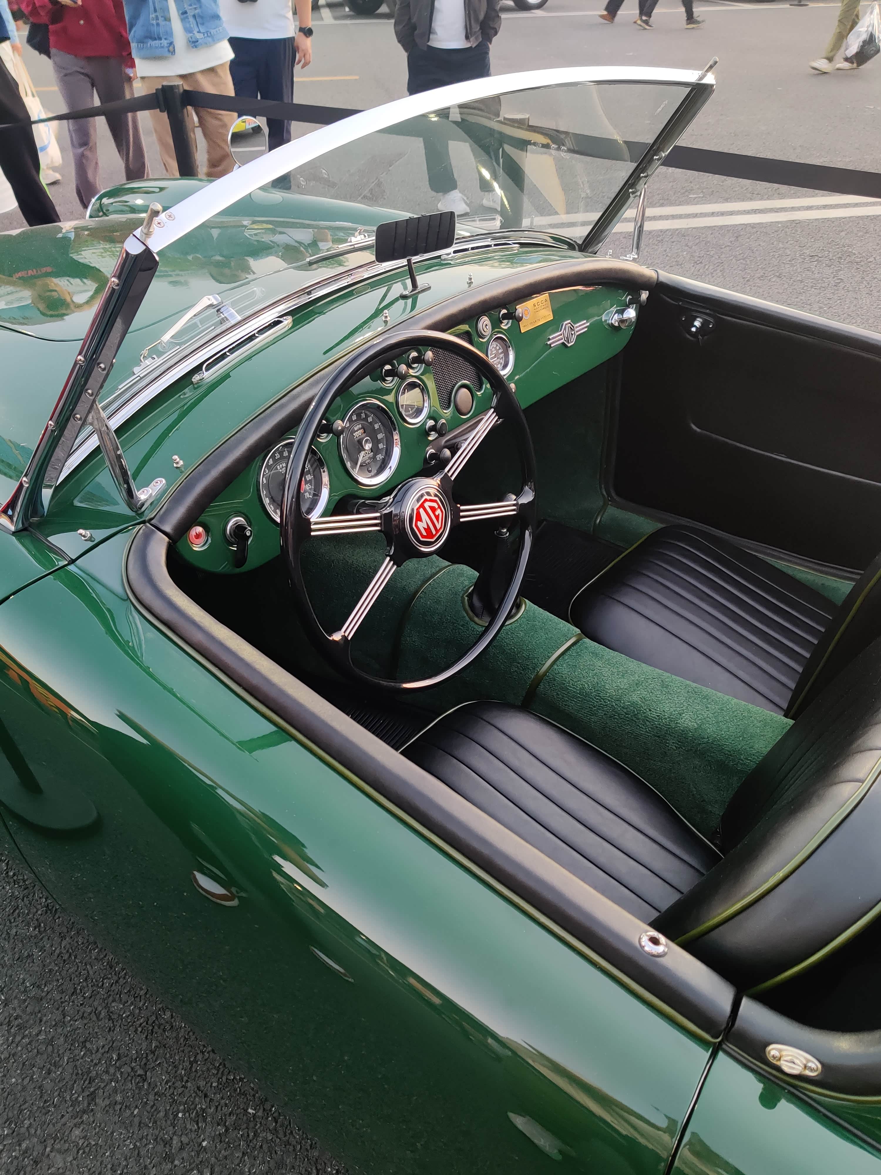 展会上,最让我惊艳的是一辆老名爵。墨绿色的车身在夕阳下像一颗低调又高贵的祖母绿宝石,流线型的车身曲线带着那个年代独有的张扬与浪漫,车头的格栅车漆铮亮,一看就知道车主分外注意细节,大鱼眼突出的车灯却更添了几分复古韵味。敞篷的设计,内饰一览无遗。车内的仪表盘还是老式的机械指针,转动时发出轻微的“咔嗒”声,仿佛在计量流逝的光阴。旁边一位怀旧车发烧友,他说,“现在的车越来越智能,按键一按什么都有,但总少了点‘交流感’。你摸这方向盘,感受它在手里的重量,听引擎的声音随油门变化,这种人和机器之间的默契,是新车给不了的。”