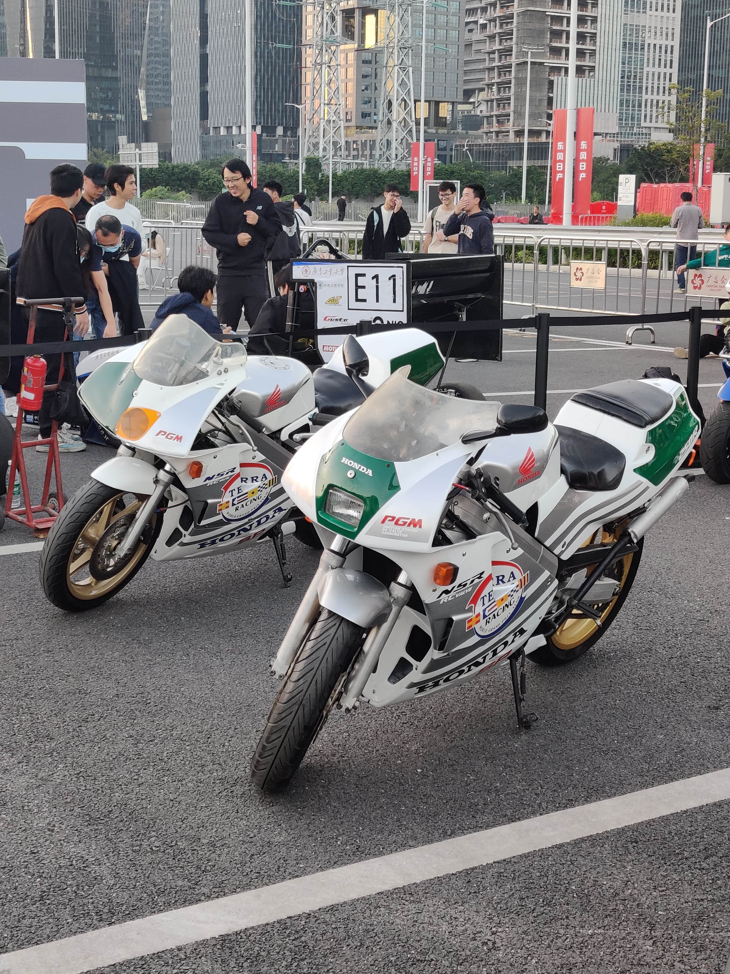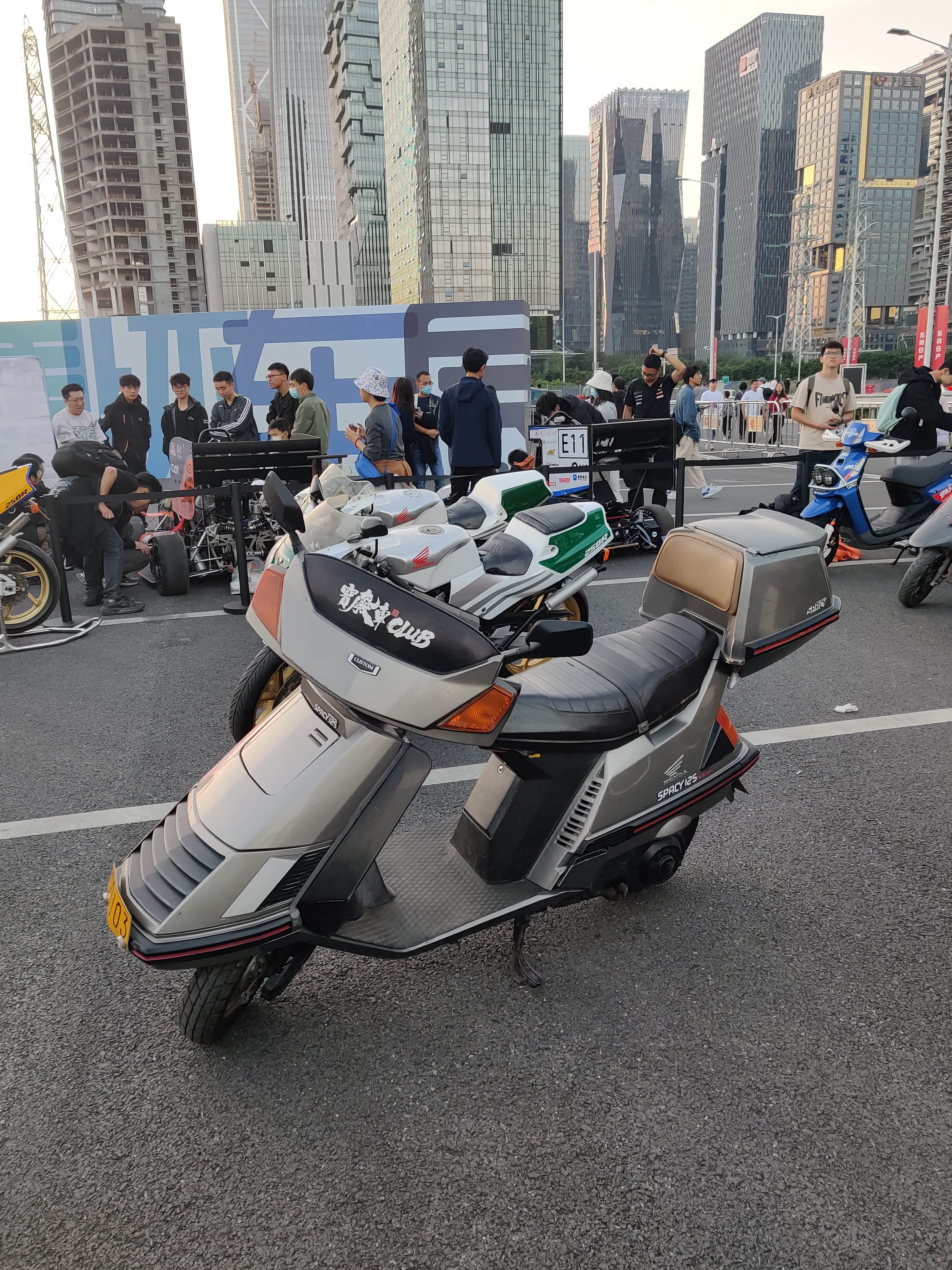 怀旧摩托角,赛车造型的身影突然撞进眼里——那是辆1994年的本田CB400SF,正是刘德华在《烈火战车》里骑的同款“烈火战车”。车身线条流畅得像一道奔涌的火焰,油箱上还贴着电影里同款的黑色贴花,车把上的防滑胶套被磨出了深浅不一的纹路,像时光刻下的指纹,座椅边缘的皮革虽有细微裂痕,却被仔细上了油,泛着柔软的光。八十年代,谁没看过那部电影…
