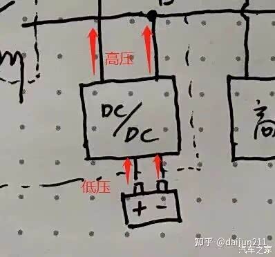 4,高压回路完成,电池输出高压给DCDC,DCDC正向工作给12V低压蓄电池充电。——上高压完成。