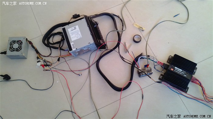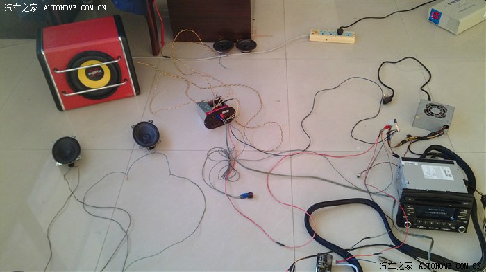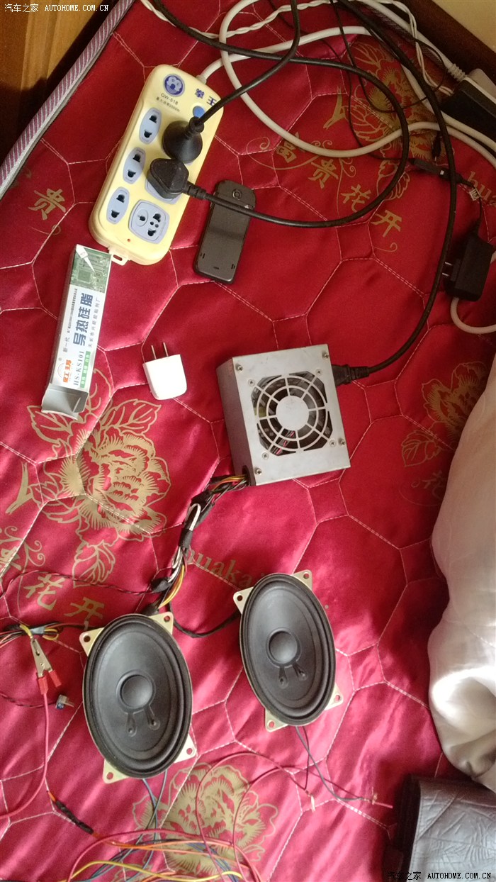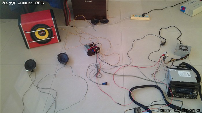 重新把小口插头上的音频线(输入功放的音频线)与主机输出音频线相连,连接一路,测一路功放输出。喇叭出声了!!!太兴奋了,成功了!!!最终效果图如下:
