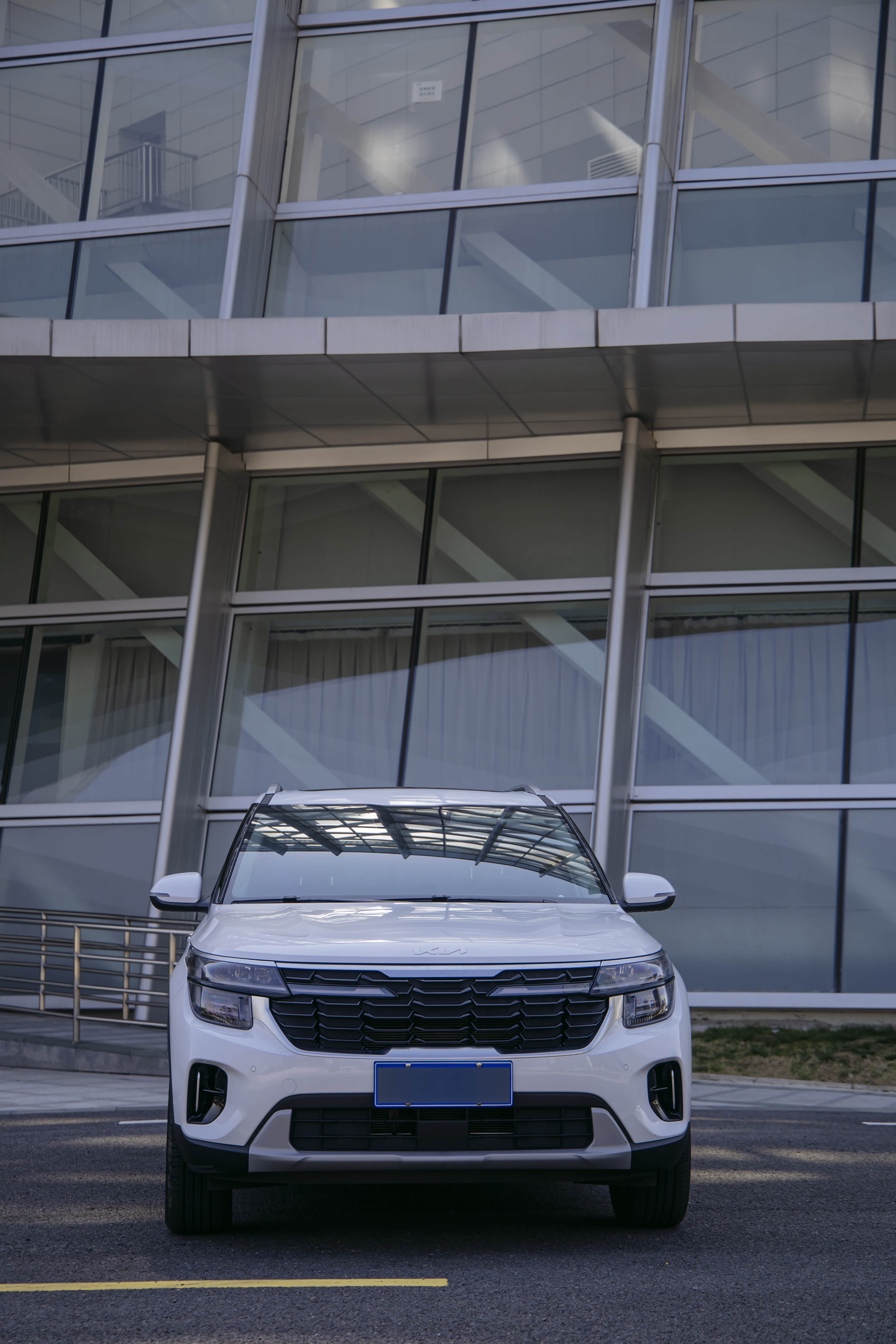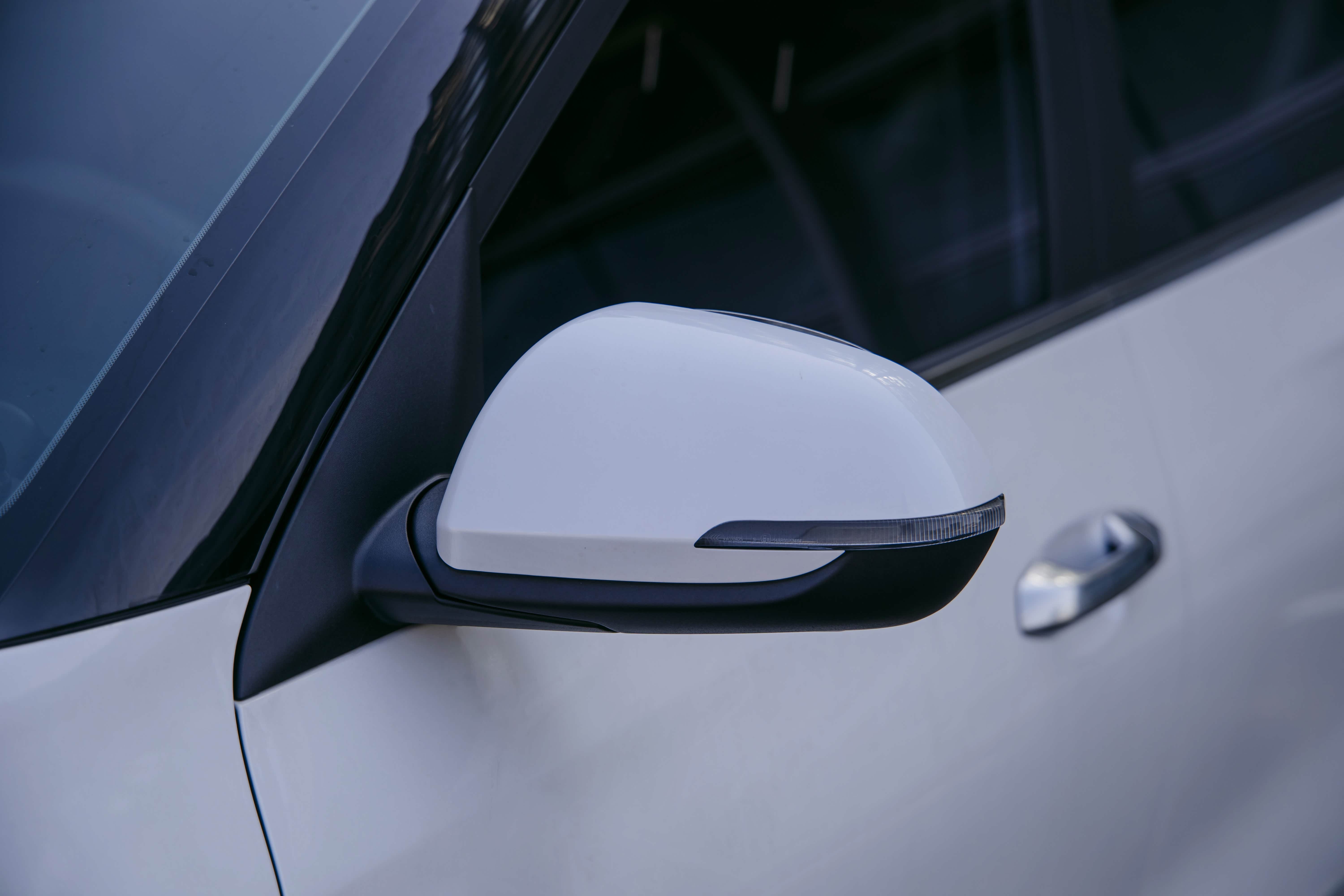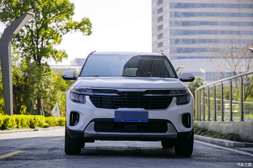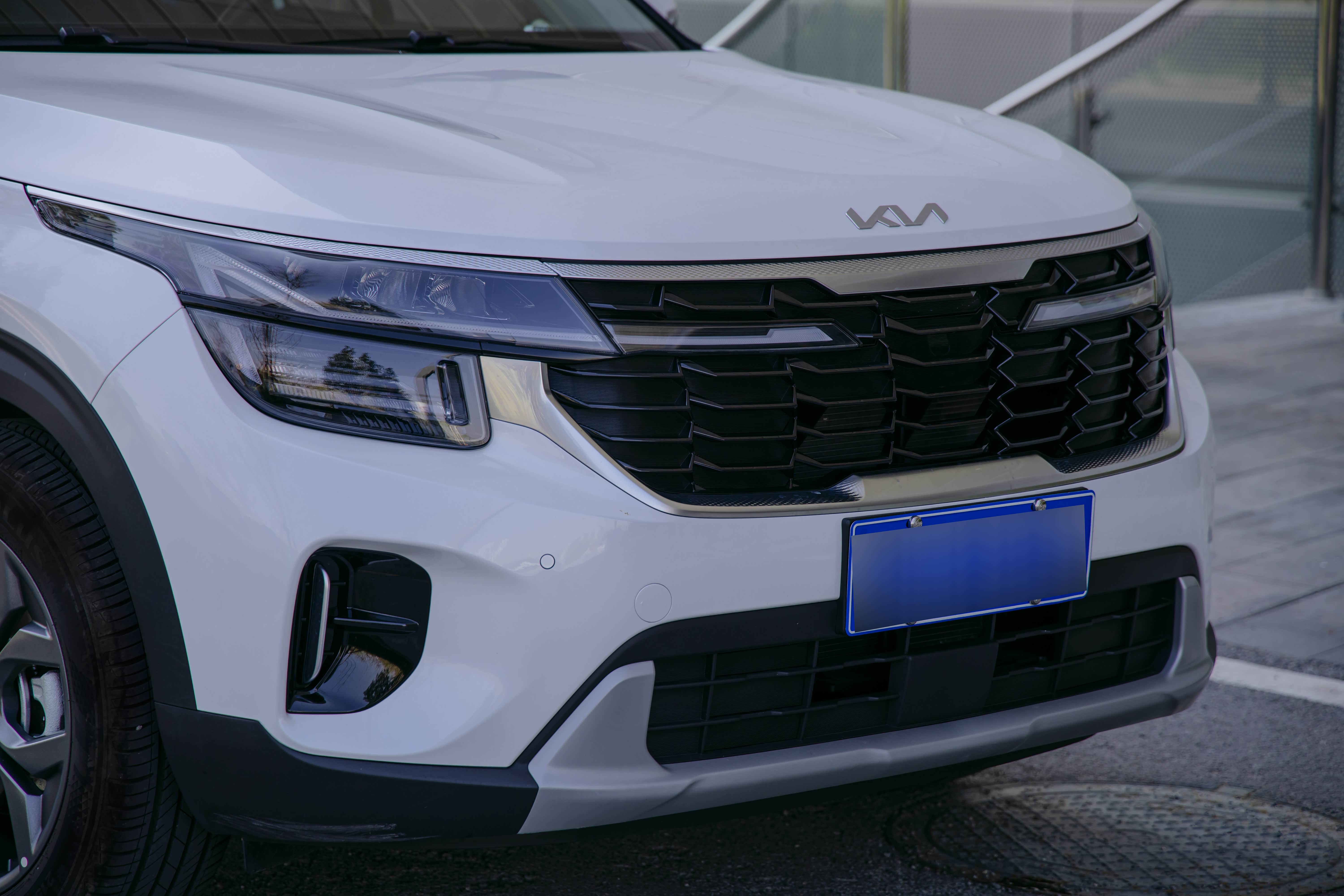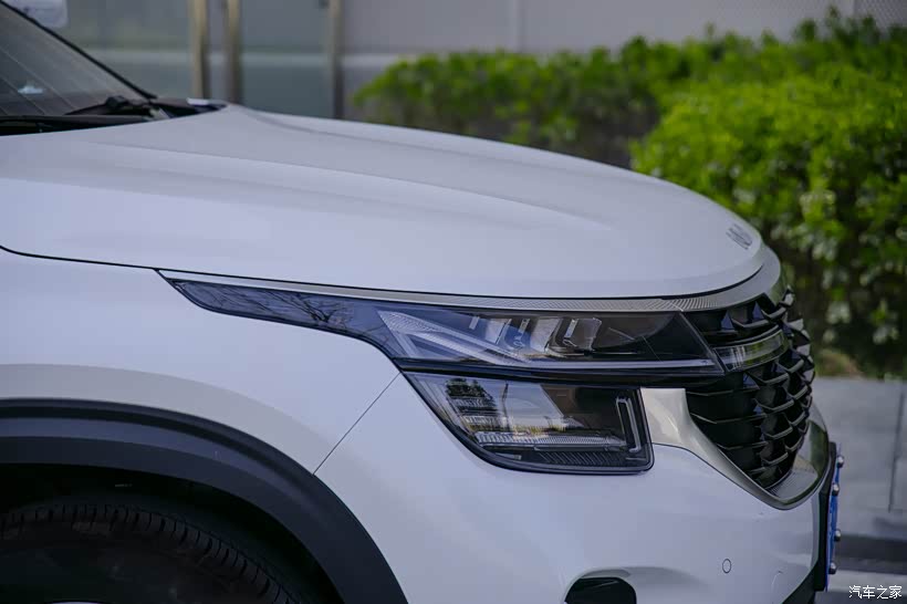 前脸采用分段式的格栅,内部用了熏黑的设计,配上这白色的车漆,识别度还挺高的。
