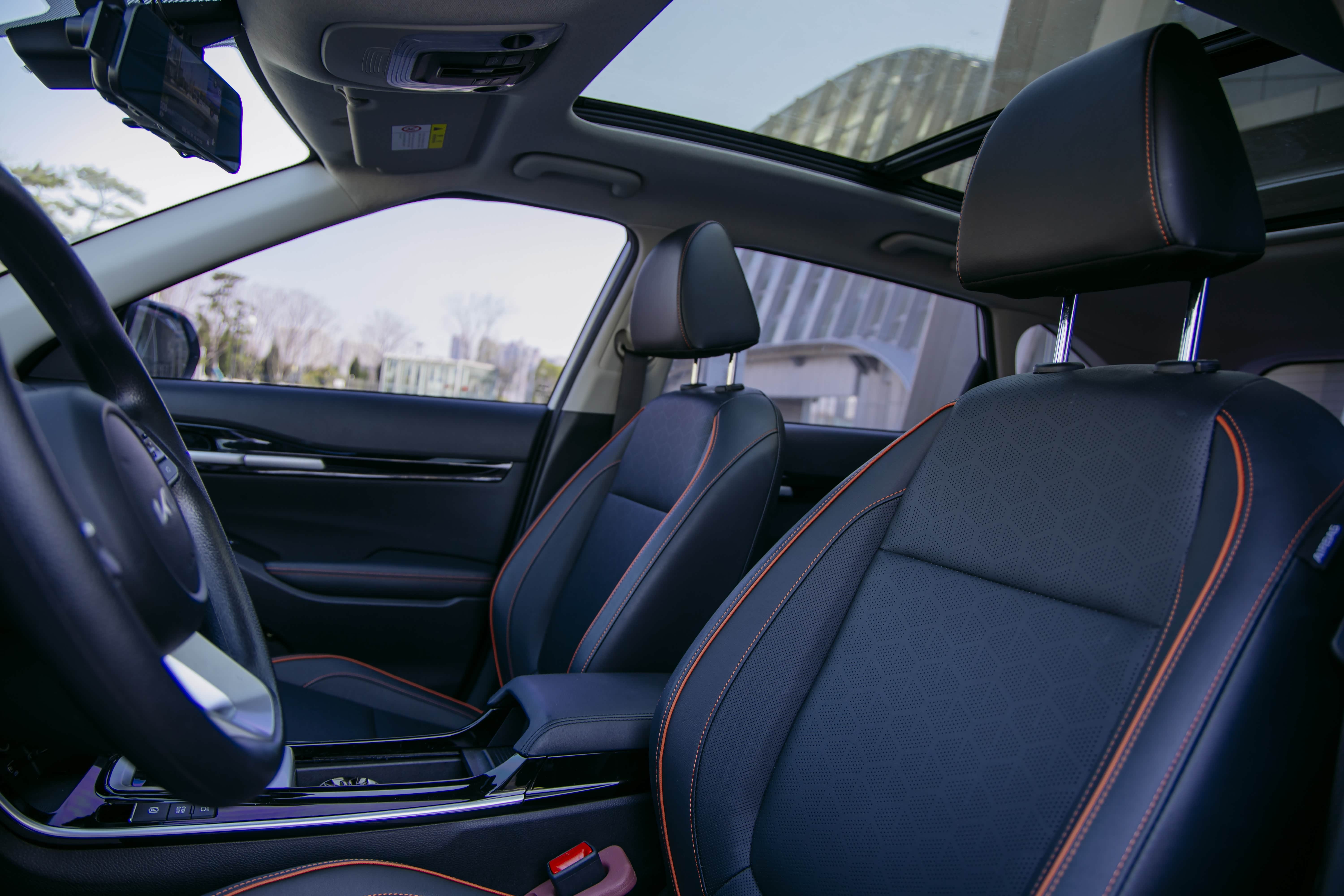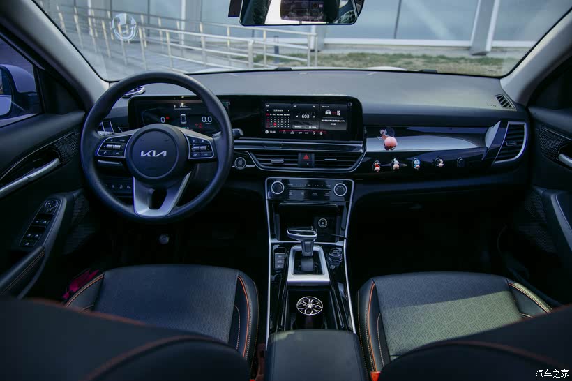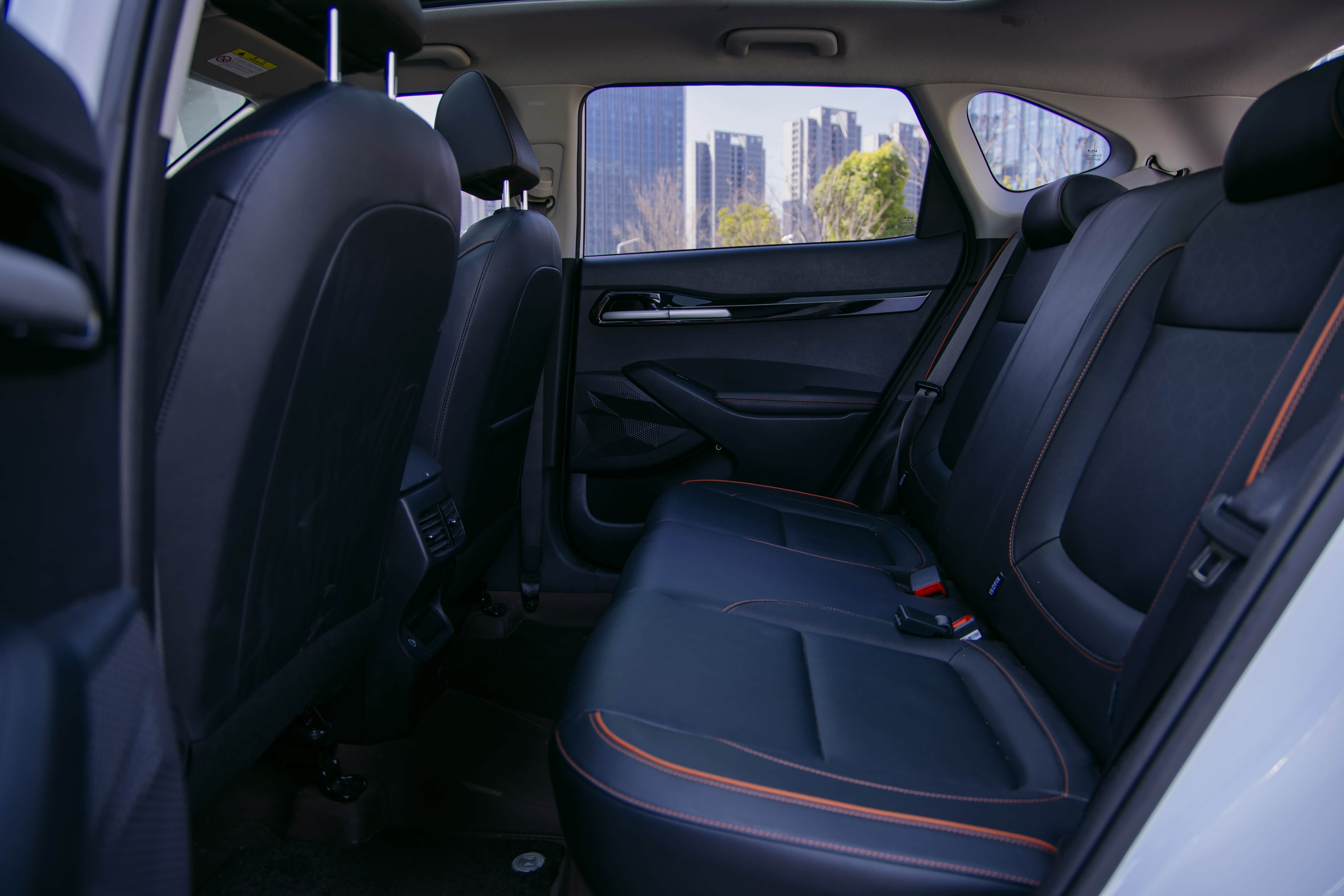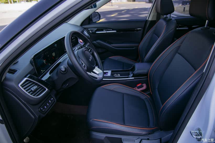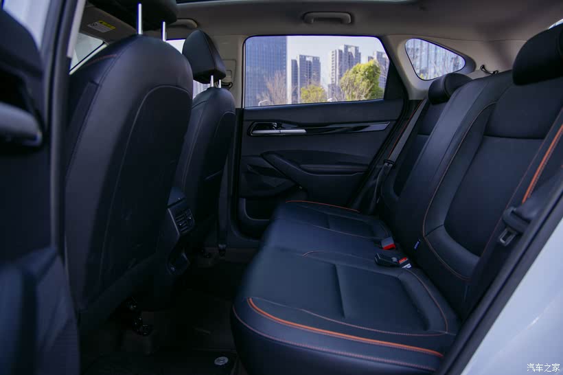 内饰设计简约大气,黑色的内饰,用了橙色线条渲染,带着一丝可爱气儿,坐在车内没啥严肃感,反倒透着一种温馨气儿。