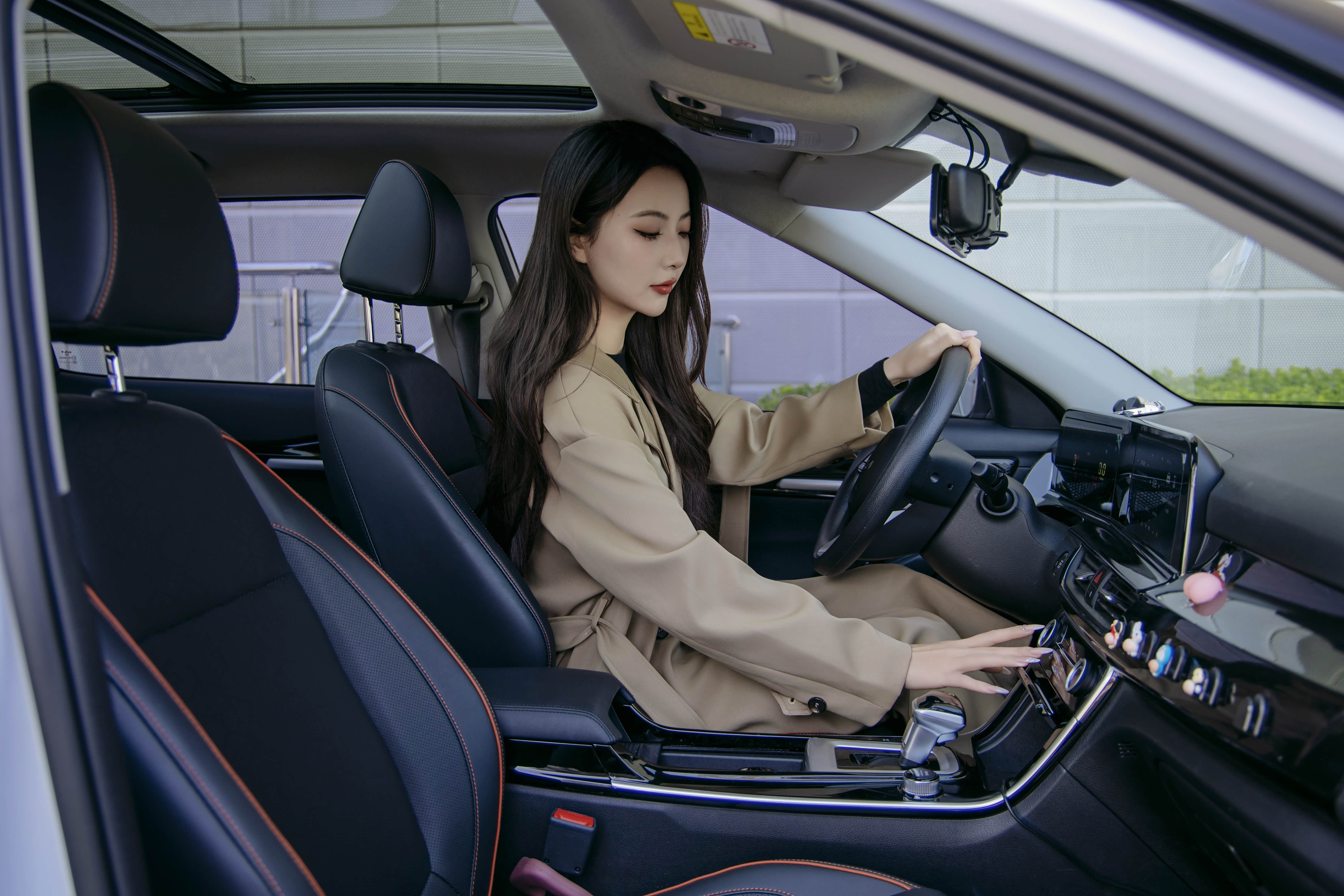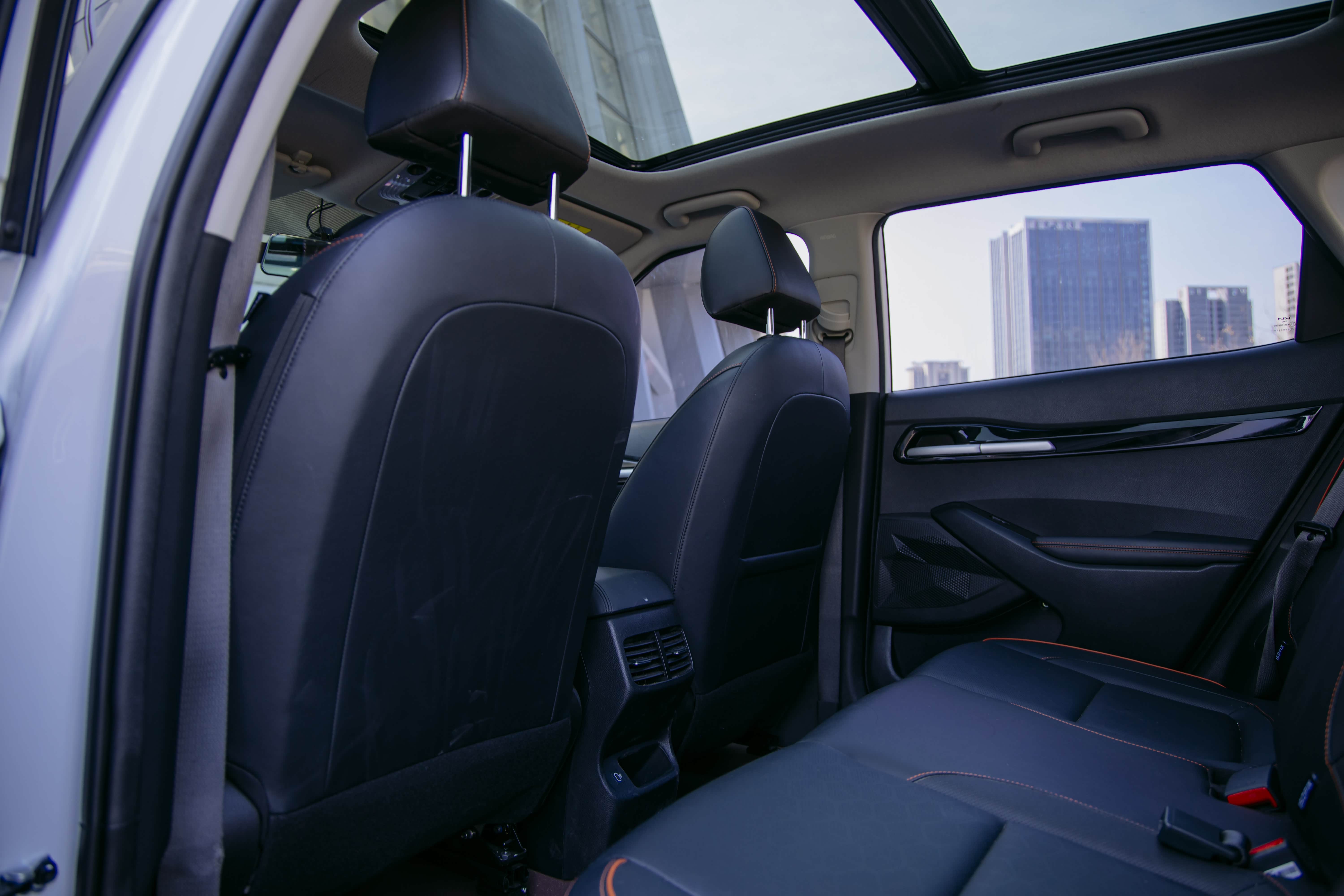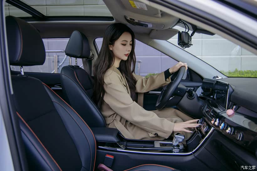 全景天窗一开,车内相当亮堂,座椅靠背两档可调的设计,让爱穿裙子的她避免了“正襟危坐”的尴尬。