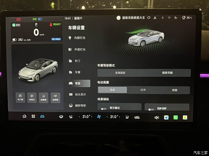 前排的一体式运动座椅对身体的包裹性和支撑性都很到位,长时间驾驶也不会感到疲劳。座椅通风功能反应迅速,在炎热天气里,能迅速带来凉爽,提升了乘坐舒适度。车顶 4㎡的星空天幕,不仅增加了车内的采光,让车内显得更加通透宽敞,还为驾乘增添了一份浪漫氛围。不过,由于车辆采用了溜背造型,后排头部空间对于身材较高的乘客来说,可能会略显局促。