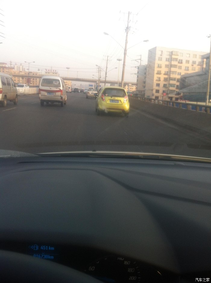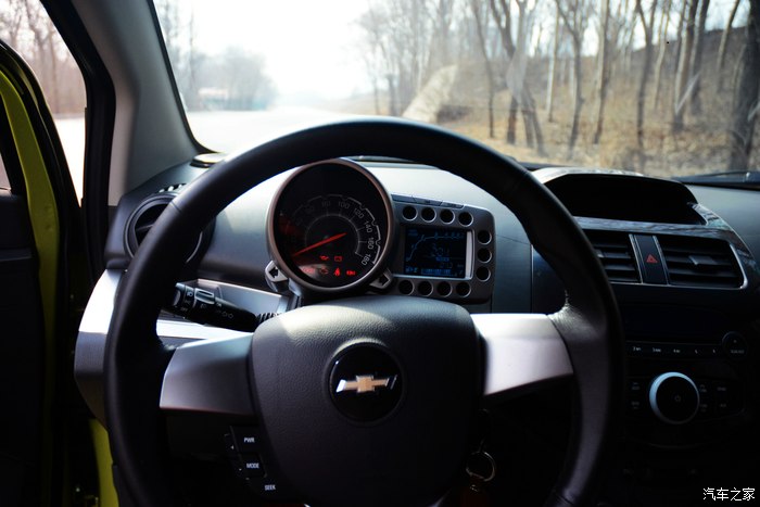 不得不说通用的底盘调教功夫真的挺棒的,悬挂很有韧性,过沟沟坎坎和减速带的时候底盘非常有厚重感,跟smart的纯硬不一样,感觉跟它底盘最接近的车是凯越,要知道凯越后悬挂可是双连杆啊。然后就是方向盘,尺寸比较小,真皮握感比较舒适,虽然是机械液压助力转向,在低速的时候也能转得动,相对其他液压助力转向的车还是比较轻的,可能是因为轮胎比较窄了吧。方向盘指向比较精准,没什么虚位,过弯的时候能清楚的知道轮胎的状态,但是还是因为轮胎不够宽,过弯时候的信心不太足,怕推头,开了几天一直没有把小帕逼到极限。4条ContiPremiumContact 2轮胎非常厚道,刹车距离很短很给力。油门跟刹车踏板的力度跟回馈都很线性,非常容易上手,比起smart偏硬偏贼的刹车跟油门简直是新手的福音。