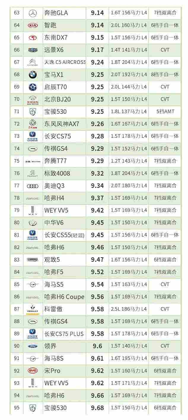 (五)按照以上规则,入榜车型数:845个