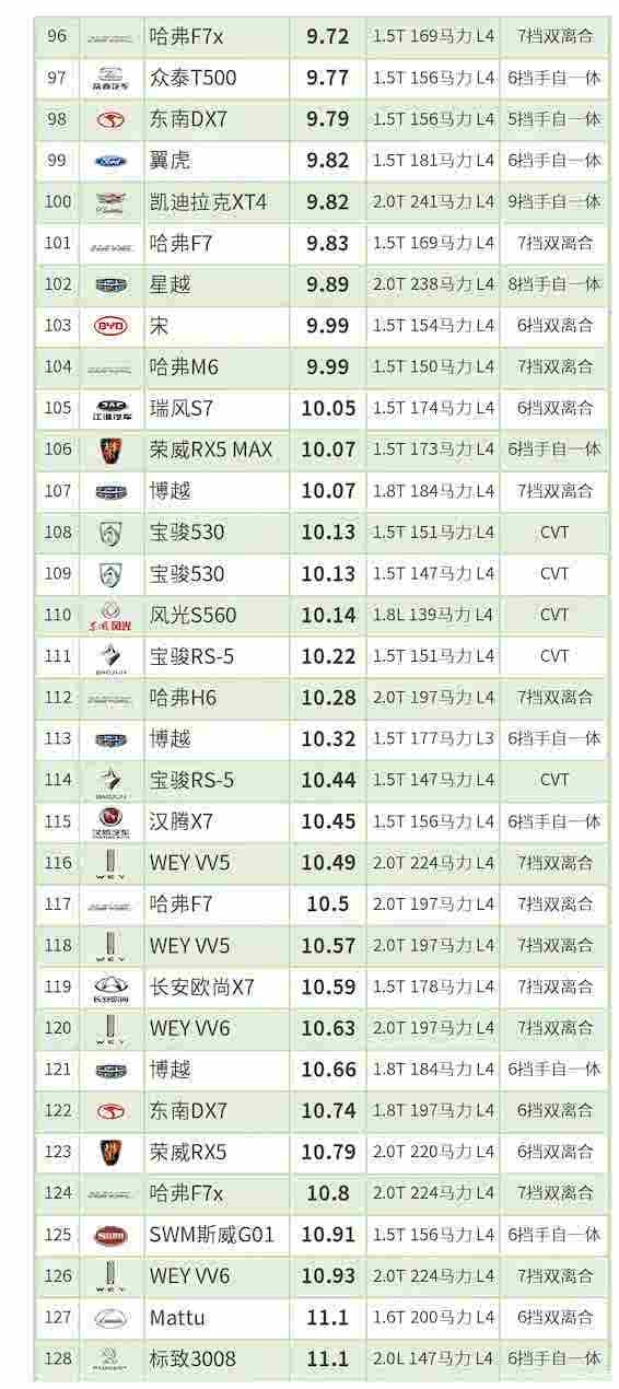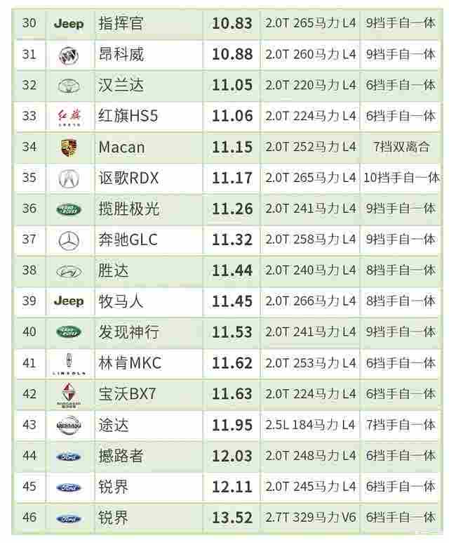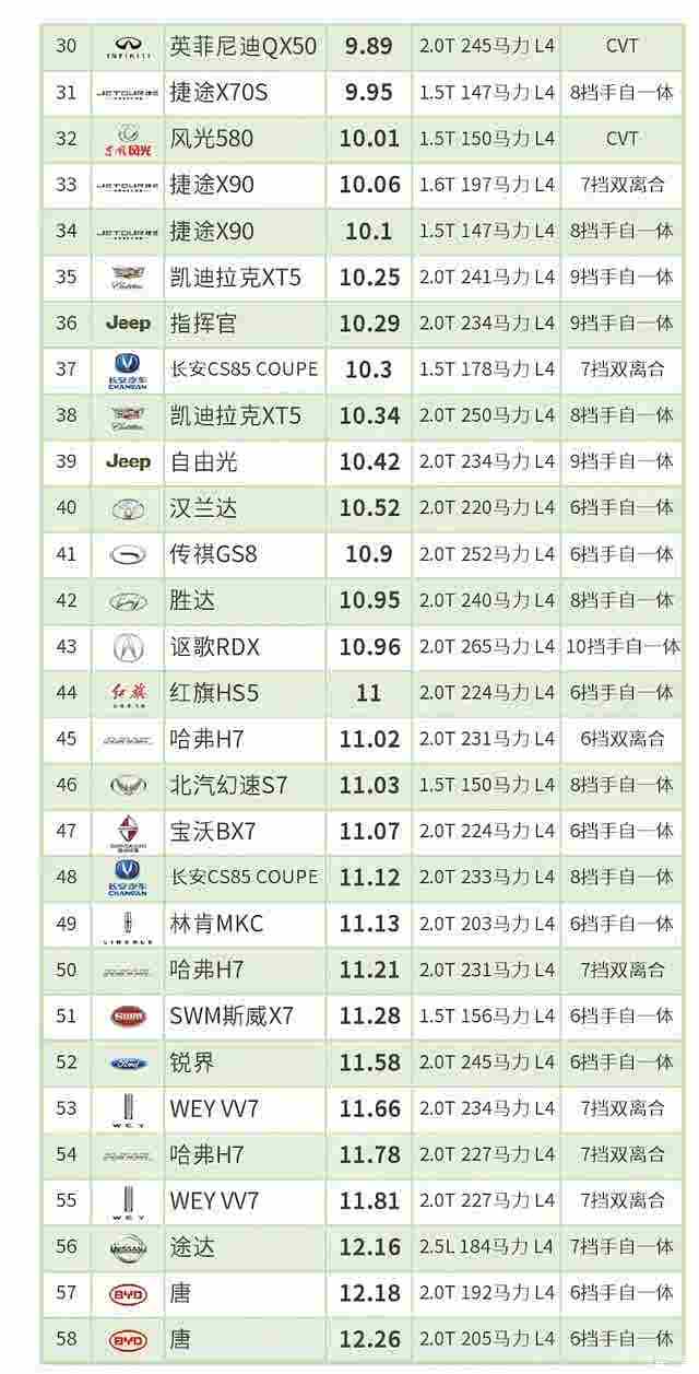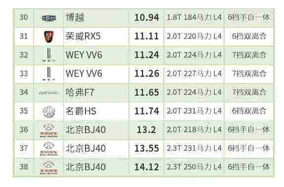(一)本榜单仅限2018年款及之后的车型;