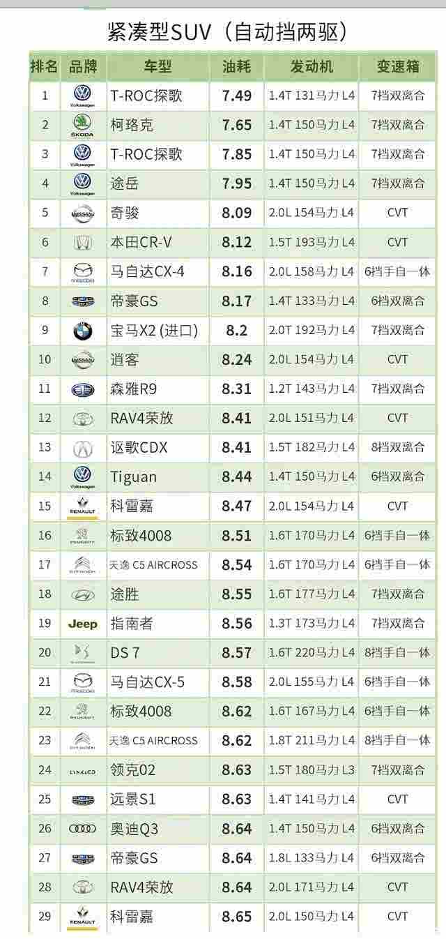 2019中国汽车油耗排行榜规则