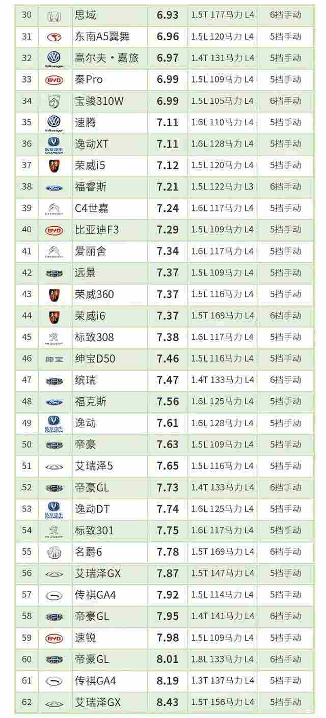 2019年度中国汽车油耗排行榜基于小熊油耗真实车主用户提交的加油记录统计制作。排行榜制作过程采用严谨的统计方法,如实反映各款车型在车主实际使用中所体现出的油耗性能。