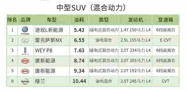 (三)油电混合动力、插电混合动力在对应级别 车型中单独排名;