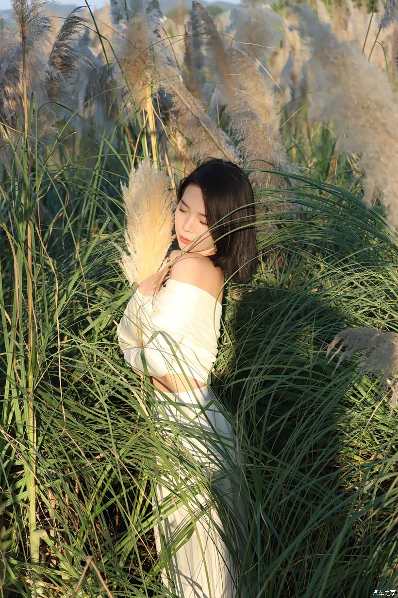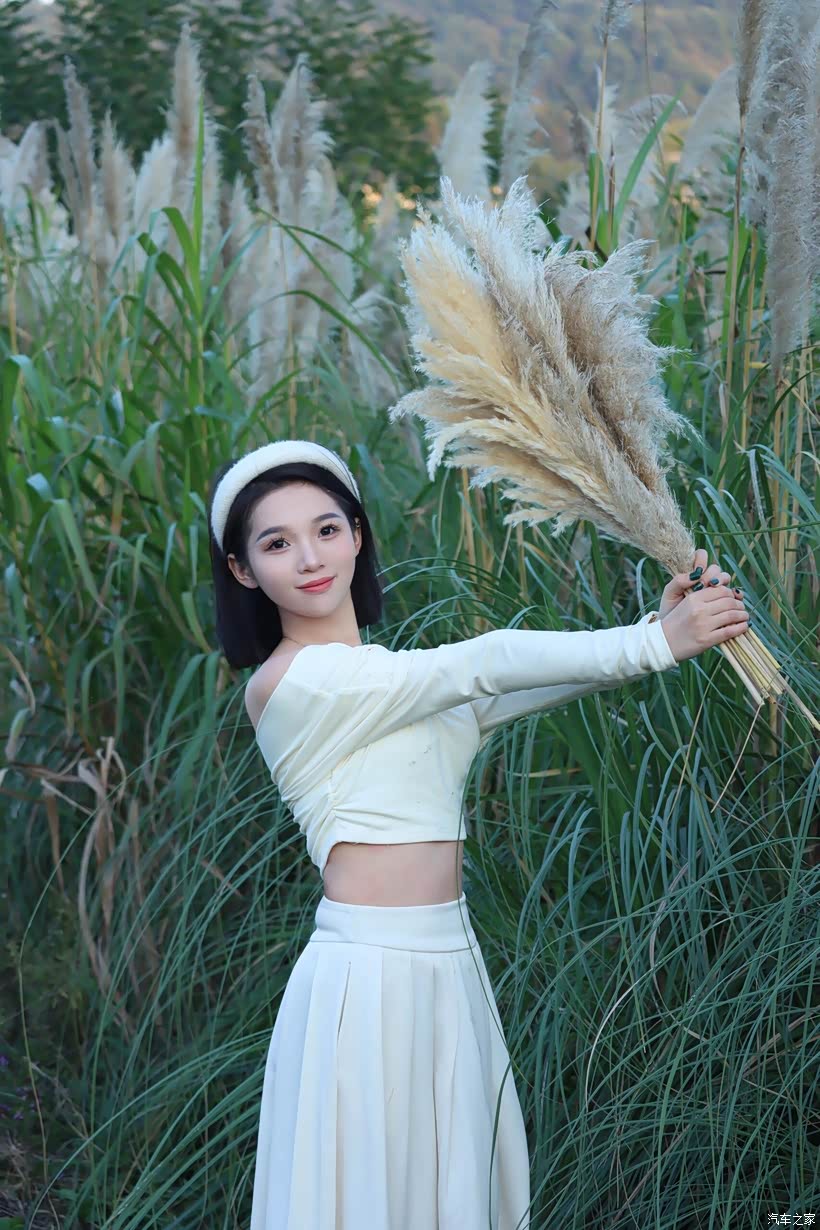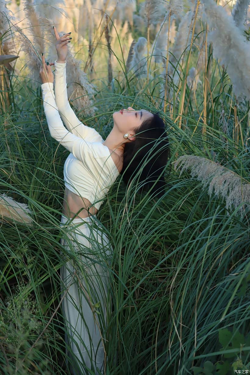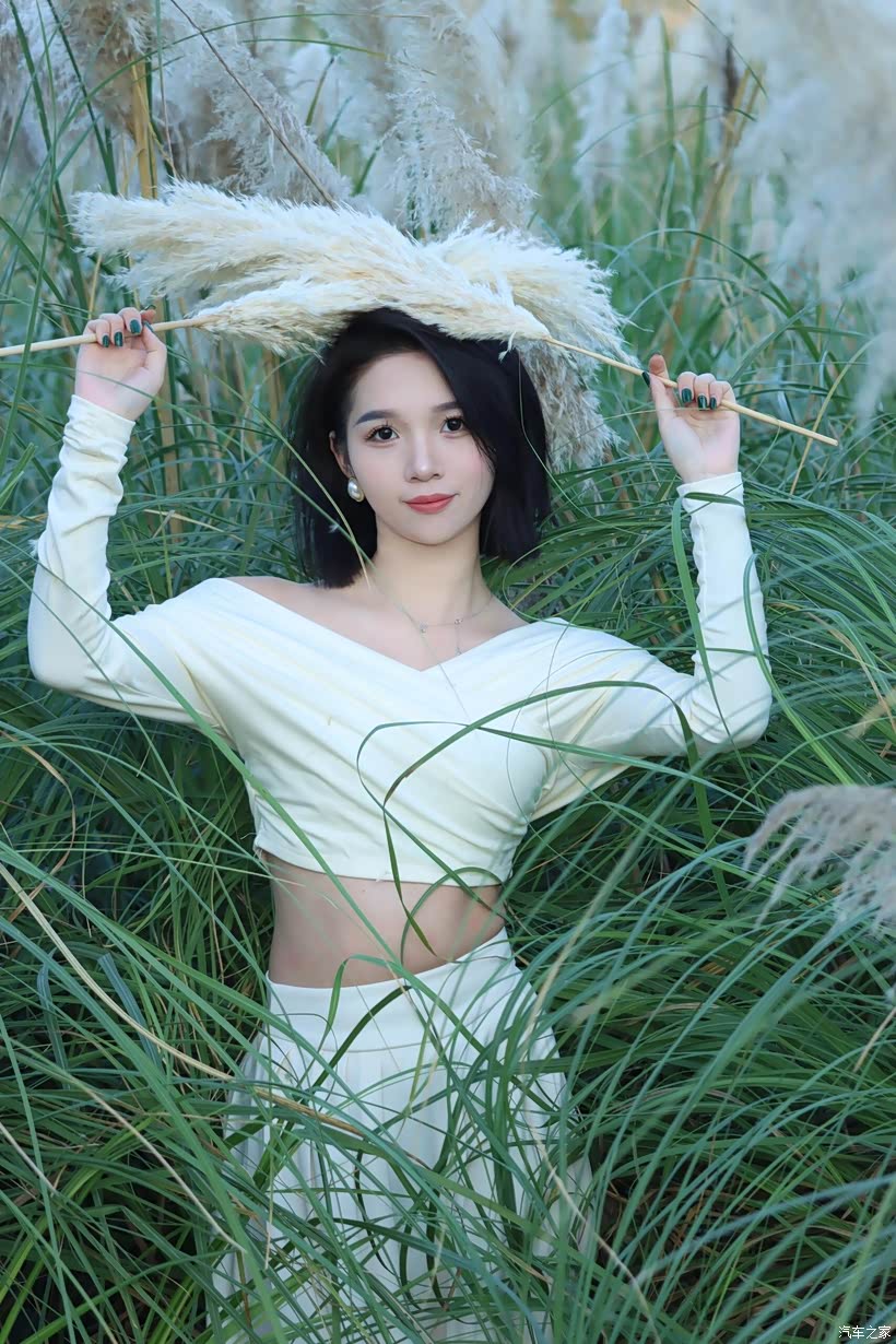 - 互动式姿态:让模特手持芦苇花束,或轻触、或环抱、或举过头顶,让人与芦苇的互动成为情绪的延伸。当她将芦苇花束举向天空时,舒展的肢体是对自由的向往;当她把花束贴在脸颊时,亲昵的动作是对这片自然的眷恋。