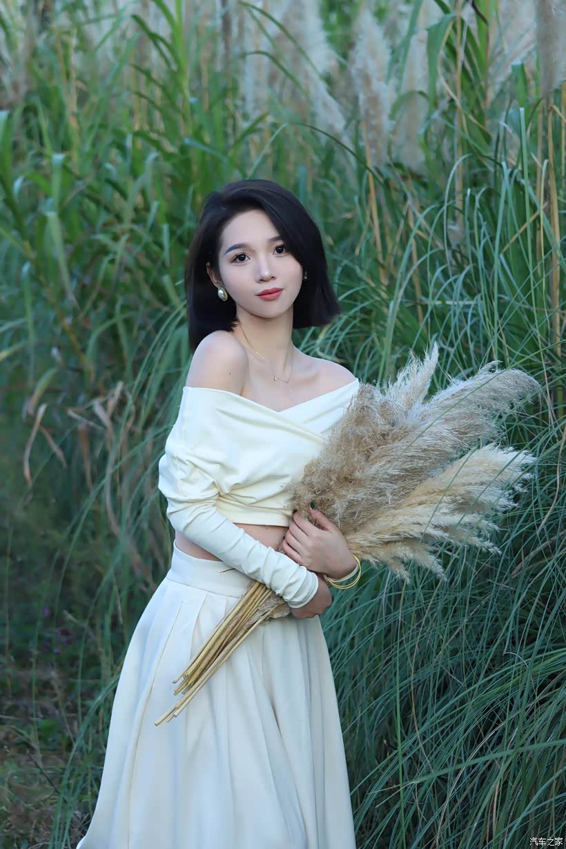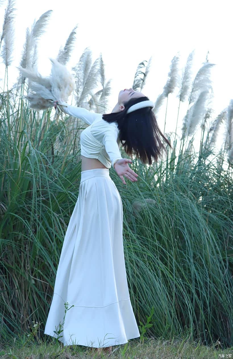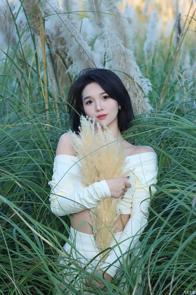 - 互动式姿态:让模特手持芦苇花束,或轻触、或环抱、或举过头顶,让人与芦苇的互动成为情绪的延伸。当她将芦苇花束举向天空时,舒展的肢体是对自由的向往;当她把花束贴在脸颊时,亲昵的动作是对这片自然的眷恋。