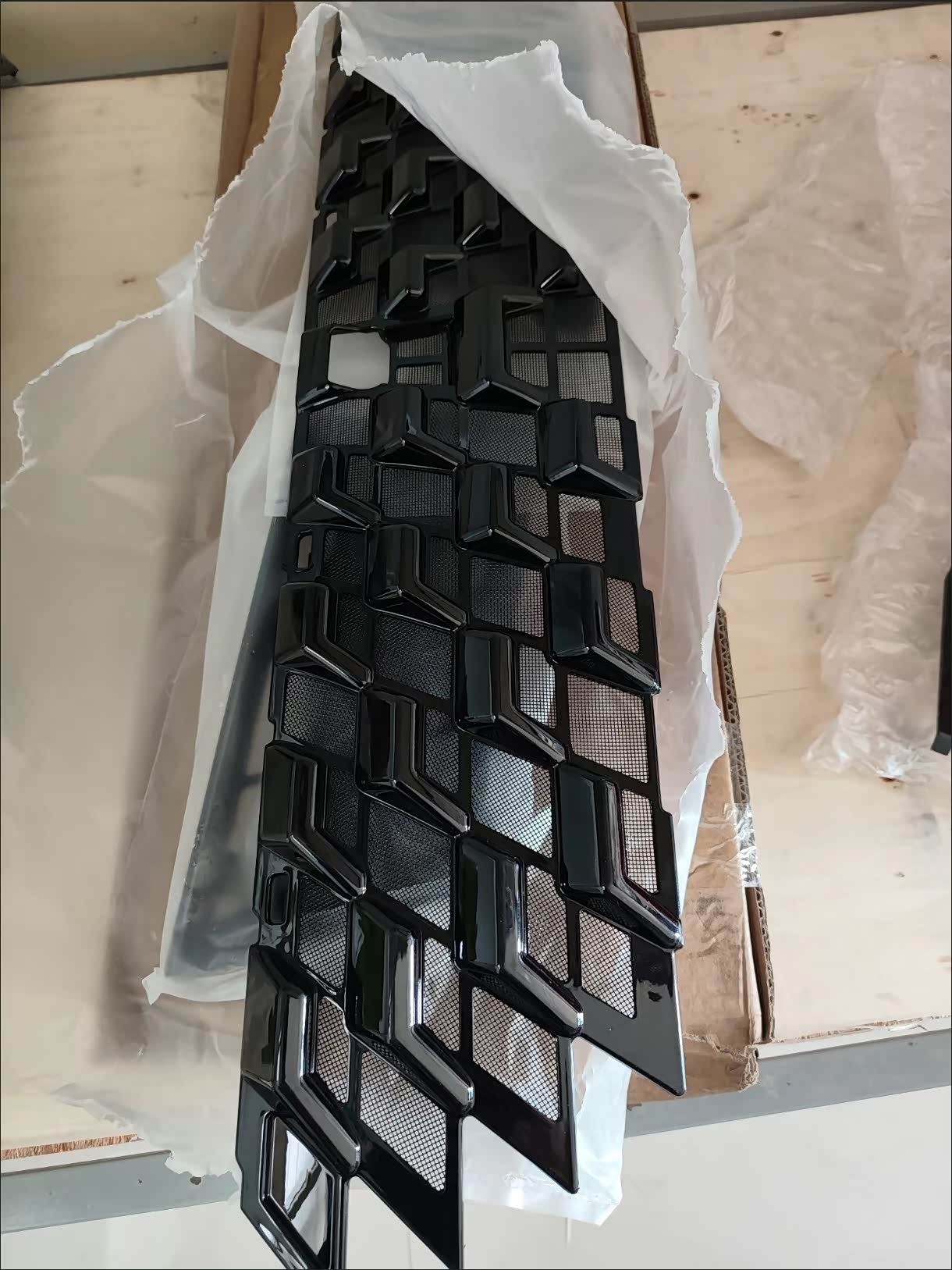 将防虫网铺在水箱与冷凝器前方,对齐格栅安装位置,确保网面平整。