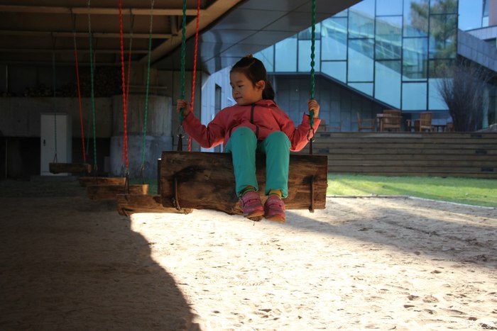 朝族人玩的秋千,应该是站在上面荡的吧。