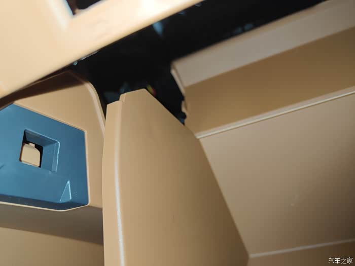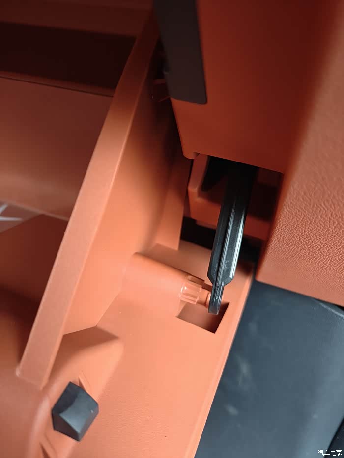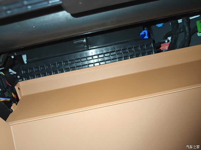 然后找到位于副驾手套箱下方的滤芯盒,这个的话打开手套箱基本就能看到,不过我看了视频,说是能整个卸下来,还说要把右侧的连接杆取下来。然而事实上是,完全不需要。可能视频里的多少有点区别吧。只要把手套箱盒子,后面的挡板往后面按过去就可以了。然后留出来的一条缝隙,就足够整个新的旧的更换了。