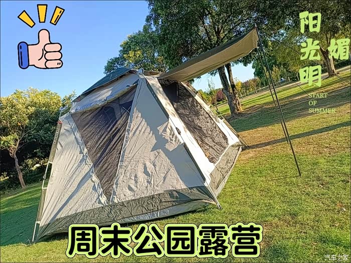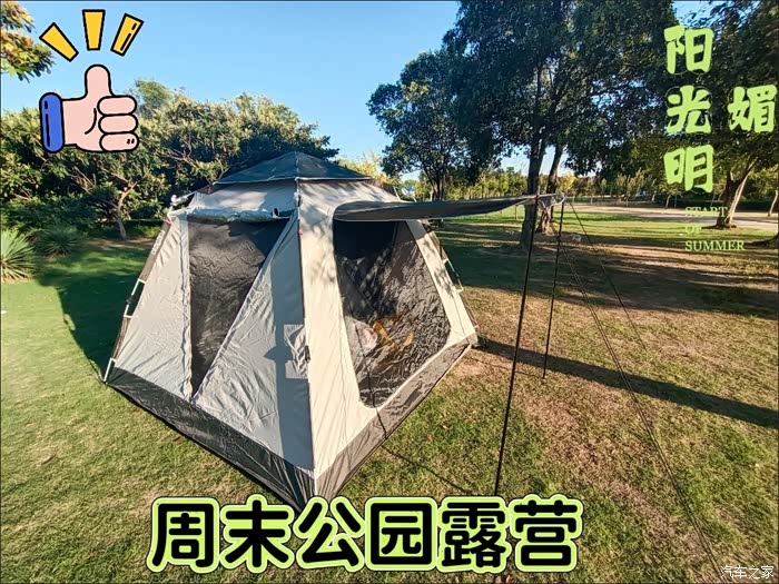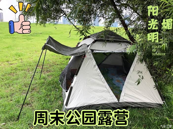 到了公园,一眼就看到了大片绿油油的草地,真是让人心情舒畅。我们赶紧找了个合适的地方,把帐篷支了起来,这样就有了个小基地。孩子特别兴奋,在草地上跑来跑去,还时不时地来找我们要零食吃。我和老婆则坐在帐篷外,一边享受着阳光,一边看着孩子玩耍,感觉特别惬意。