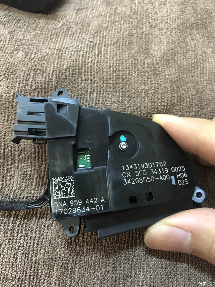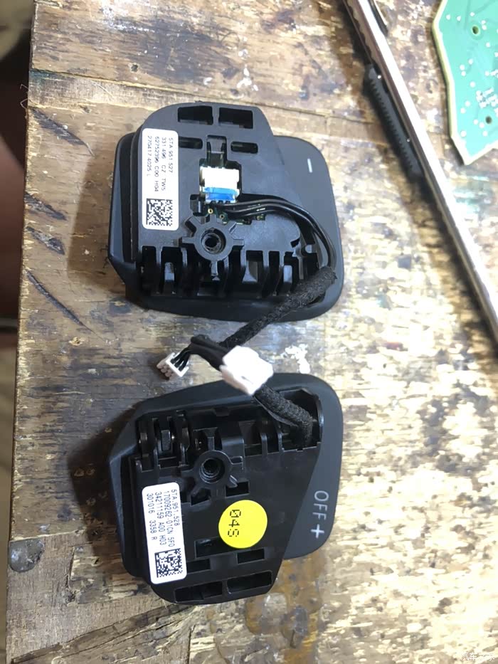 拆多媒体按键 可以看到有个孔,但里面没有插头,这个位置就是链接换挡拨片的