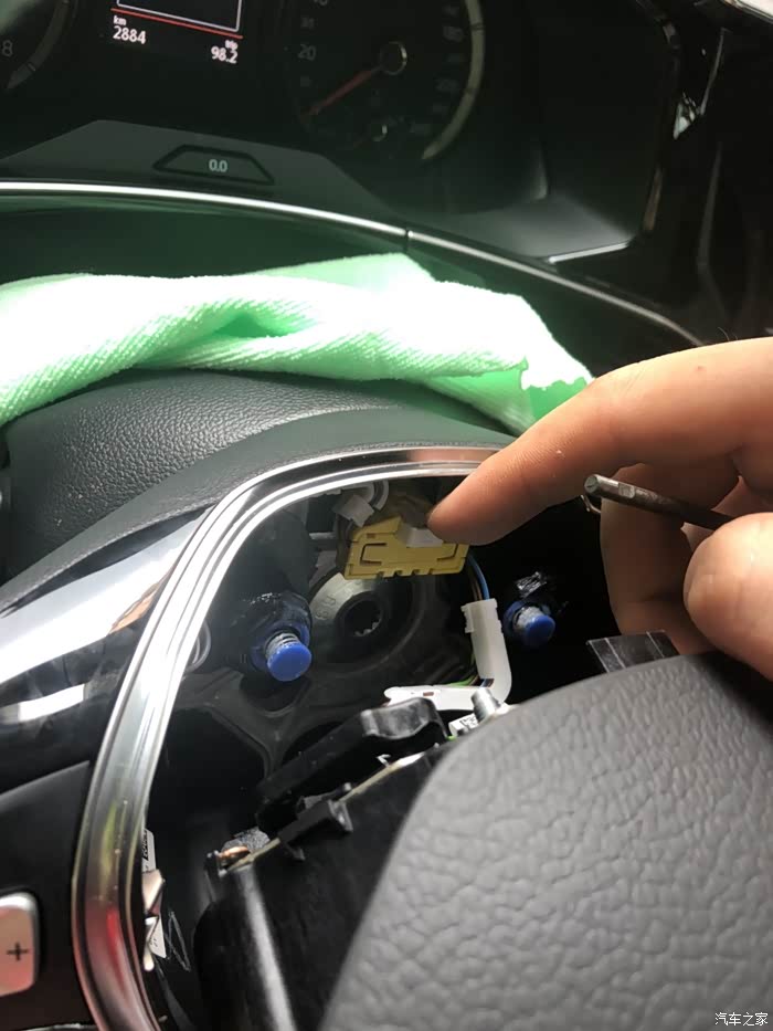 拔掉喇叭的计电器,拆放方向盘喇叭就不会大叫