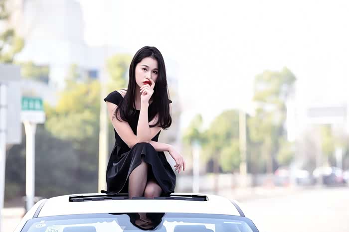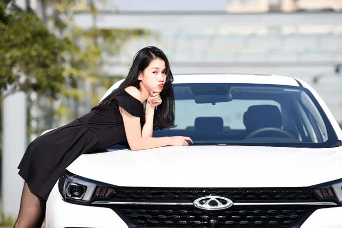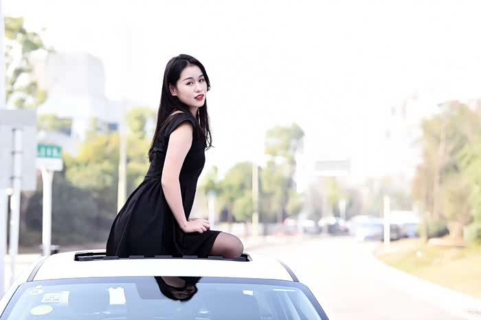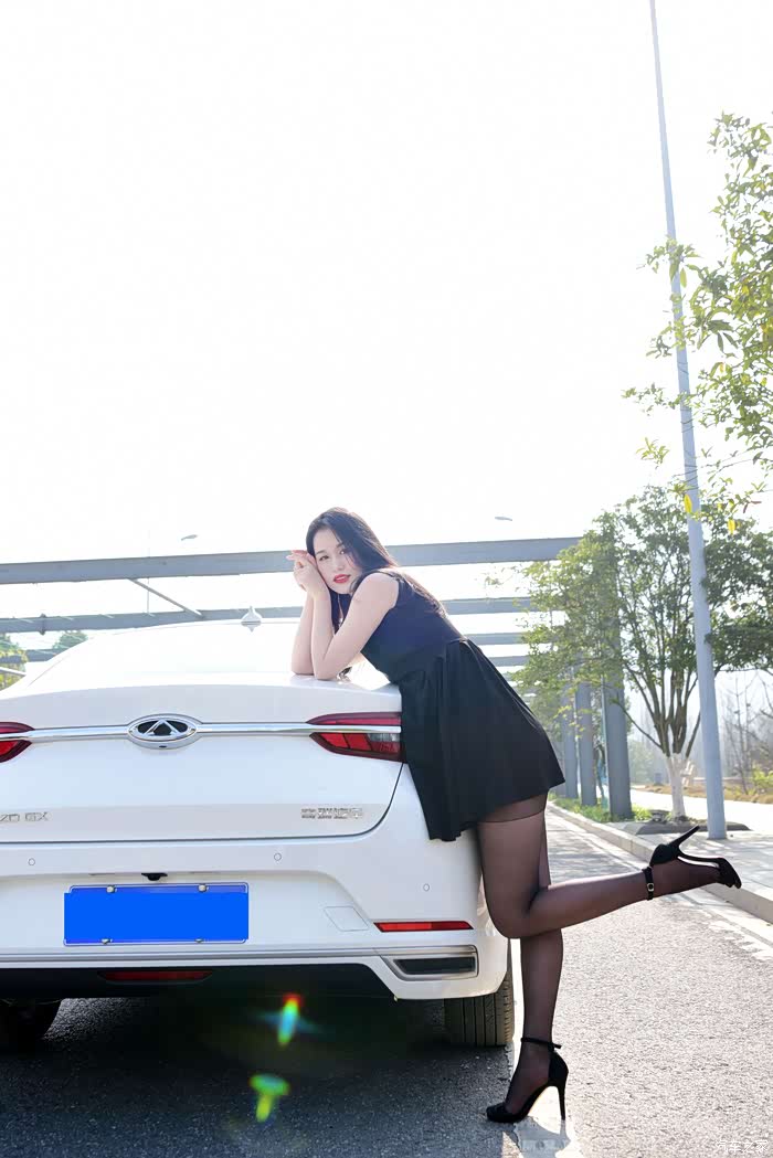 上一篇媳妇当车模,大家的反响就很不错,都说媳妇的姿态很像一位专业的车模。媳妇对于自己拍出来的效果也很满意,这次也特意找了一件漂亮的衣服来”美一美“,黑白搭配——完美。