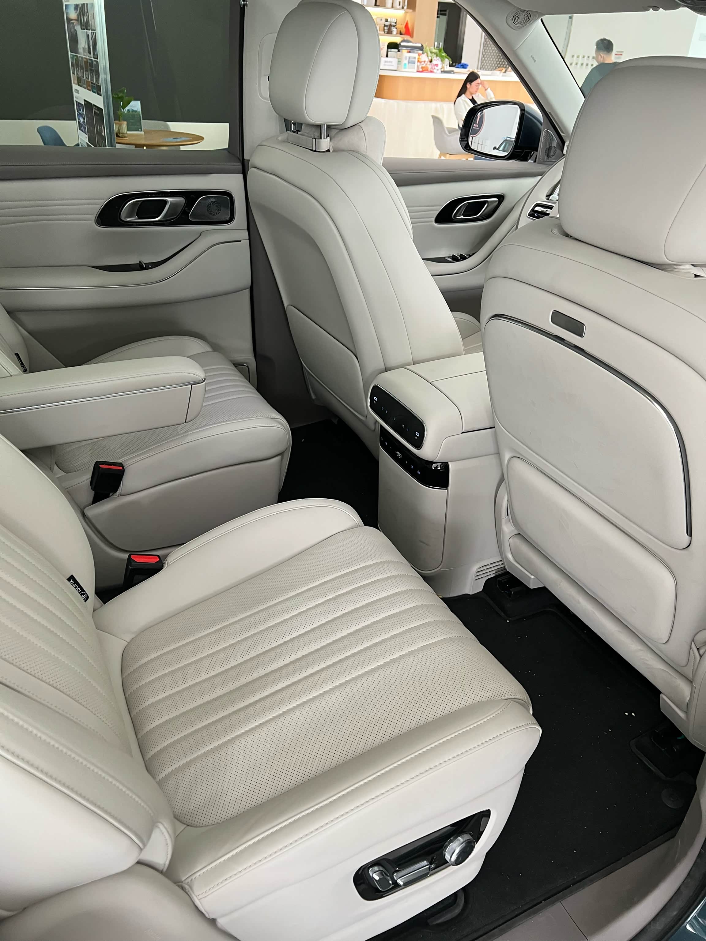 实车比照片好看太多,车头贯穿式灯带亮起来星星点点的,稳重又不呆板???。内饰的大连屏视觉冲击力强,四音区语音识别特别灵敏,后排说话都能迅速响应,小冰箱尺寸不小,放饮料零食很方便???。6座布局虽然第三排腿部空间不算夸张,但座椅斜躺后还算舒服,我179cm的身高坐进去头部不压抑,全家短途出游刚好够用。还有40处储物空间,孩子的玩具、随身杂物都有地方放,后备箱脚踢感应开启也很实用。