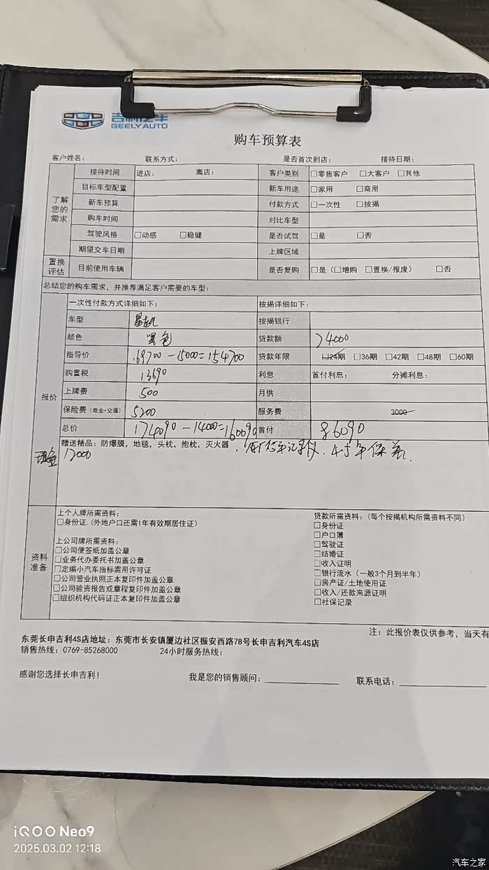 我查到广东地区星越L也是优惠1.5万,你这个保险、上牌费、购置税,价格都正常,我看还送了你行车记录仪、4-5次保养,这个价格可以了。