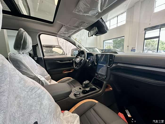 内饰:科技感与舒适性兼得座舱采用12.3英寸全液晶仪表+10.1英寸中控屏组合,支持SYNC 4智能互联系统与语音控制。座椅采用防水防污面料,后排支持180度放平,可扩展为临时卧铺或露营休息区