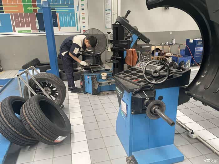 原厂轮胎轮纹挺深的指令不错,细看下还是有些裂纹的,为了安全还是选择更换。更换的新轮胎必须做一下动平衡。