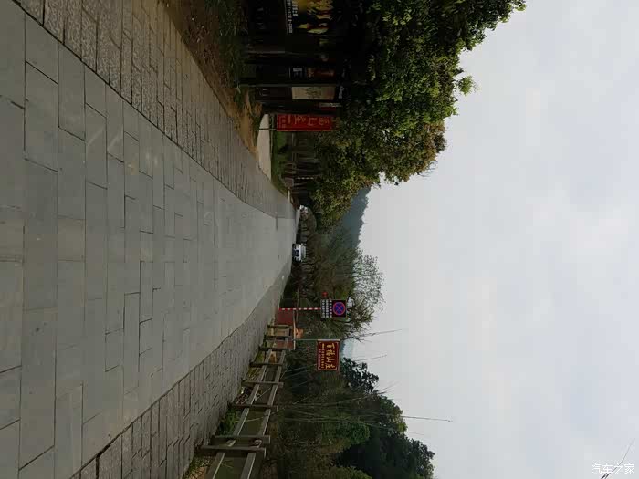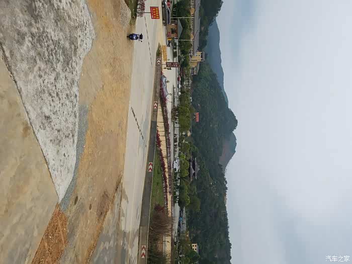 白线边缘就是旅游指引。永定这里的山很大很多,下了高速就是省道,弯多,好在路宽。