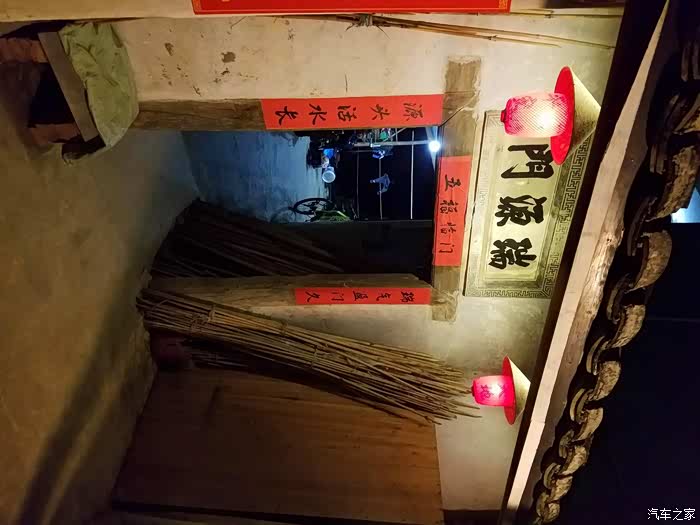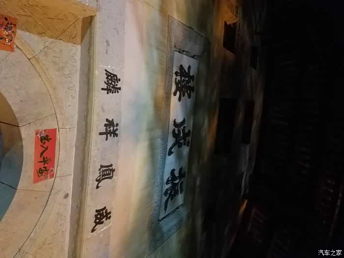 夜晚的古楼是不是有些幽深的感觉?盈联镌刻端正,运笔遒劲,但那褪色的朱红却点点班驳,一任岁月轻轻地剥落。这是一幅典型的书写中国传统教育的门联,与这座土楼一起灌注了全部的孺家思想,被后人一代代传承着。