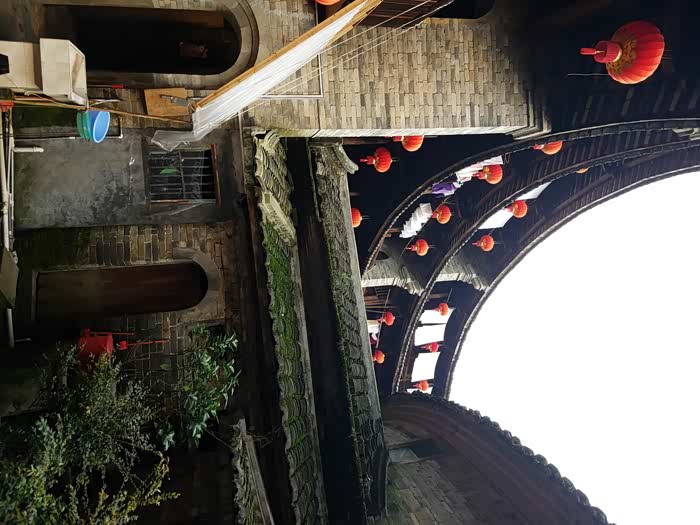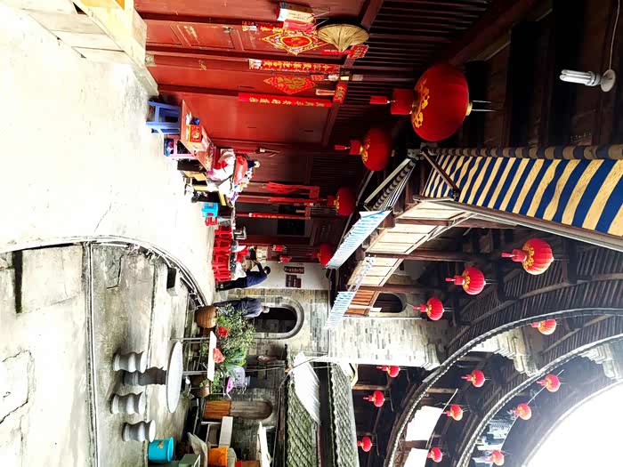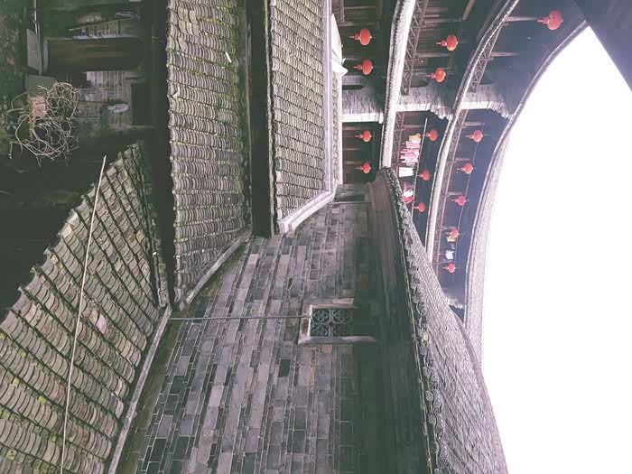 始筑于明未,建成于康熙四十六年的土楼。曲指一算,至今已有三百多年的历史了。修筑一座土楼,跨越了两个朝代,近70年的成建期,可见其建筑规模之宏大,设计精装之困难,可以说在外墙成型后,内部房间和回廊装饰一定是精雕细凿了,以此付出了几代人的辛劳。