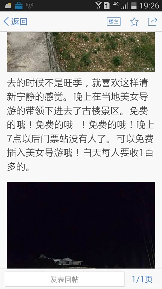 去的时候不是旺季,就喜欢这样清新宁静的感觉。晚上在当地美女导游的带领下进去了古楼景区。免费的哦!免费的哦 !免费的哦!晚上7点以后门票站没有人了。可以免费插入美女导游哦!白天每人要收1百多的。