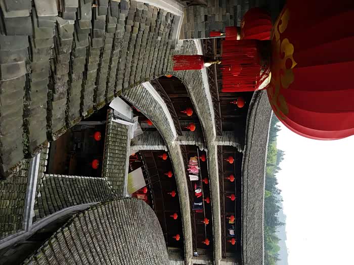 古楼散落在河的两旁。