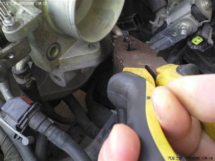 拔开节气门传感器插线口和拔起在节气岐管上的节气阀铁插.....再有节气门总成下面的怠速阀传感器插线口都要拔开.