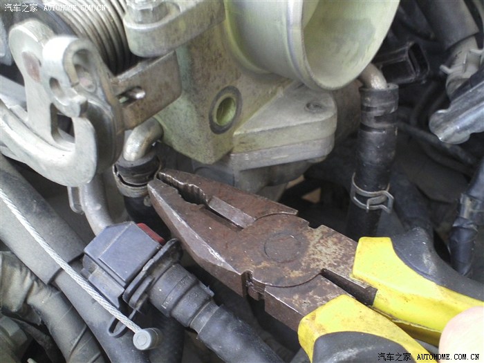 要十字螺钉拆开节气岐管上的卡扣螺丝然后拔出节气岐胶管